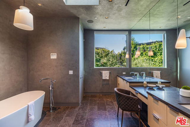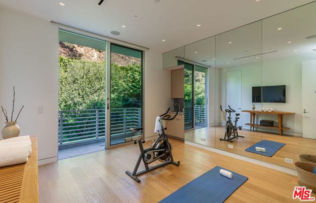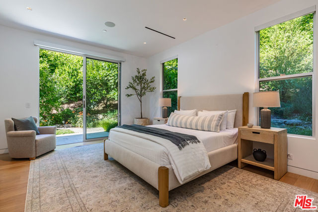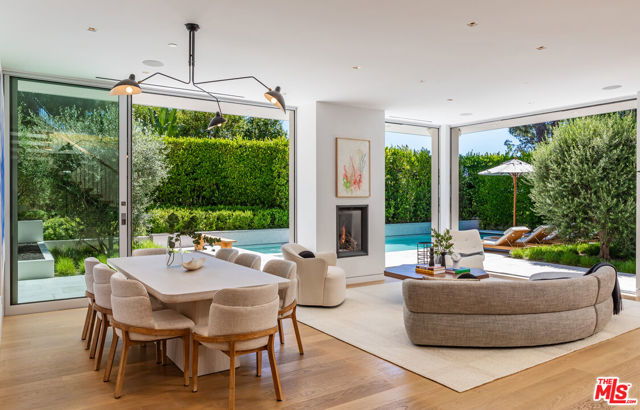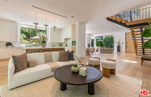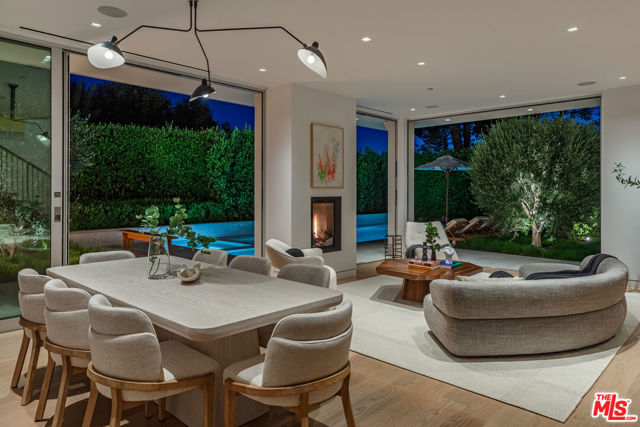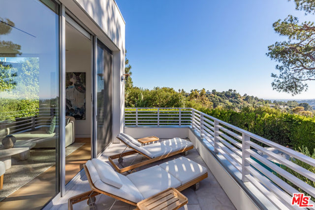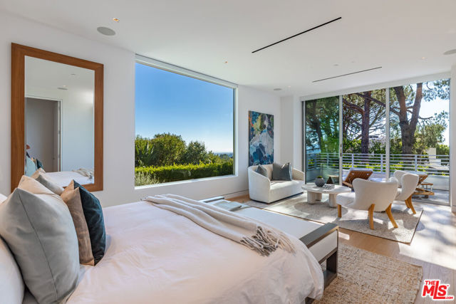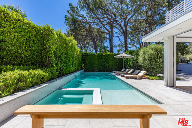 Tucked behind private gates on coveted Alto Cedro Drive, this 5,872-square-foot estate is a study in contemporary elegance. Reimagined in 2022, the six-bedroom, seven-and-a-half-bath residence balances bold modern design with the warmth of enduring materials. Sculptural oak accents, honed marble surfaces, and tailored finishes bring effortless sophistication to every corner, while oversized windows and skylights flood the interiors with natural light and frame tranquil views of the surrounding hills. The grand entry unfolds into an expansive open-concept living and dining space anchored by an architectural fireplace, designed equally for quiet evenings and chic gatherings. Sliding doors blur the boundary between inside and out, leading to lush gardens, a sparkling pool and spa, and multiple zones for outdoor lounging and entertaining. At the heart of the home, the kitchen is a sleek yet soulful showpiece: Calacatta marble countertops, an oversized island, premium appliances, and a seamless flow into the sunlit family room. Pocket doors open to an al fresco dining pavilion, merging form with function in quintessential California style. The main level hosts a serene office with ensuite bath and three spacious guest suites, each with soaring ceilings and abundant natural light. Upstairs, the primary suite is a private sanctuary with sweeping views, a spa-inspired bath wrapped in marble and warm wood, a generous terrace, and a boutique-worthy walk-in closet. Also on the upper level: a plush screening room, two additional guest suites, and a fully equipped gym. Outside, the experience is both Zen and glamorous with a firepit lounge beside the pool, citrus trees perfuming the air and a tranquil pavilion ideal for meditation or conversation. Tech-forward and future-ready, the home includes a Savant smart system, dual EV chargers, solar panels, a backup generator, custom wine storage and an Oxygen Ozone water filtration system. A two-car garage completes the offering. Thoughtfully reimagined for modern life, this Alto Cedro estate blends architectural sophistication with smart technology, wellness-minded amenities and seamless indoor-outdoor flow. With its rare combination of scale, style, and serenity, it offers a compelling vision of contemporary California living at its best, private, polished and undeniably refined.
