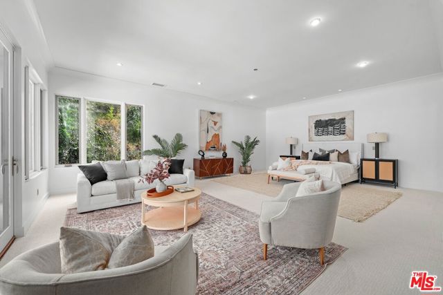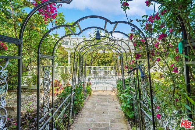 Reduced $200K with a highly motivated seller and amazing value! Welcome to this prime cul-de-sac location in lower BHPO! Surrounded by mature, lush greenery beneath towering palms, this gated home offers a feeling of peace, security, and seclusion with an expansive motor court leading to a double-door entry. Inside, gleaming marble floors flow from the living room, with its stone fireplace and banks of windows, and into the formal dining room. The kitchen opens to an eat-in breakfast nook plus sitting area and is appointed with a large center island, Viking appliances, and ample cabinetry. The primary wing is expansive, with French doors that open to a balcony for enjoying sweeping views of the canyons, treetops, and hills. The en-suite bath is spa-inspired with striking vistas, floating dual-sink vanity, jetted tub, and glass-enclosed shower. A walk-in closet has built-ins to maximize storage and organization. A secondary bedroom opens to a large terrace, and other bedrooms and bathrooms are light-filled. In the backyard, a trellis-covered pathway leads through lush gardens to a large entertainer's deck, perfect for hosting intimate gatherings and al-fresco dinner parties under California skies. Refresh and refurbish to create a dream-home sanctuary or move in today. Also available for lease.