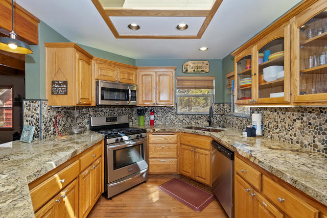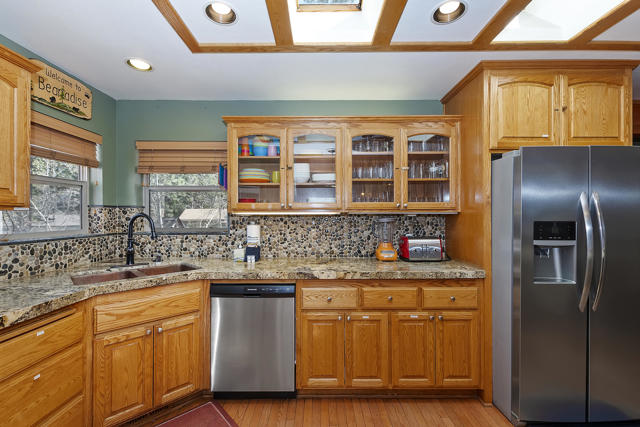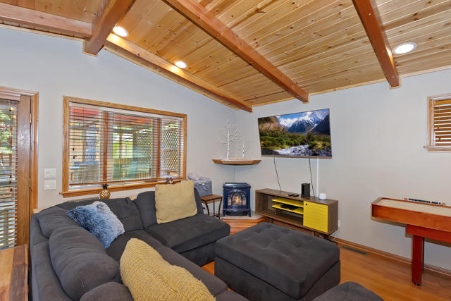 A Centrally Located Big Bear Property In Eagle Point That Offers So Much. 4 Large Bedrooms; 2 Are Downstairs With 2 Baths And Upstairs Are 2 More With 2 Full Baths (One Is Ensuite In The Bunk Bed Room). The Open Floor Plan Includes A Living Room With Fireplace, Updated Kitchen, Dining Area And Big Game Room, Also With Fireplace And Plenty Of Room For Games, Watching Movies And Has Direct Access To Back Deck With Hot Tub, Entertainment Area And A Separate Creative Shed. Separate Laundry Room With Folding Area, Sink, Ironing Board And More Cabinets, Wood Floors, Updated Windows, Newer Appliances, Skylights, Direct Access Garage And Big Closets With Plenty Of Storage. Fenced Backyard And Unbelievable Location For The Lake, Parks, Big Bear Lake Village, Slopes, Golf Course, Etc. The Front And Back Yards Are Low Maintenance And Ready For Summer Fun.