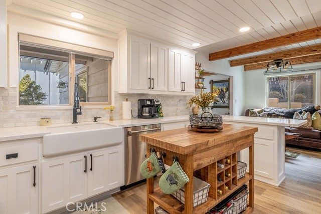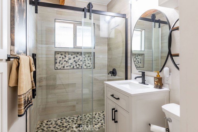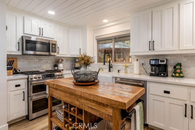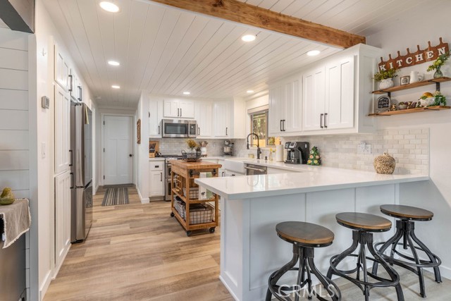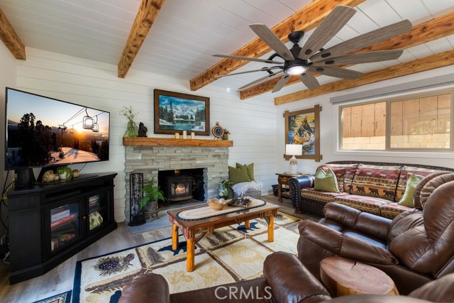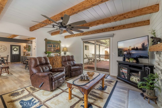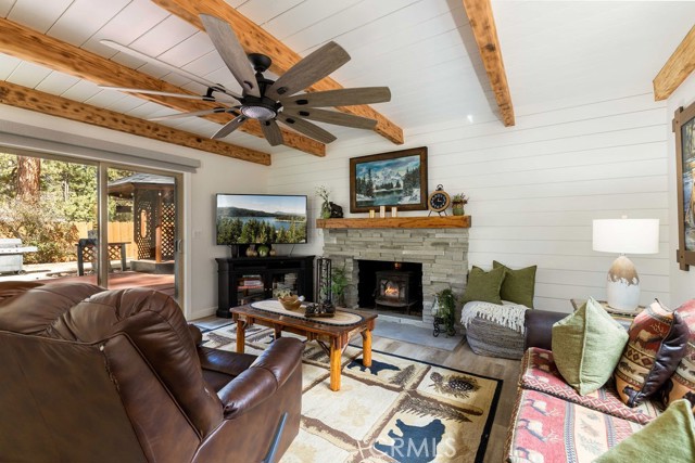 Welcome to this beautifully remodeled Sierra-style home, thoughtfully reimagined from top to bottom. Every detail has been carefully designed, featuring a brand-new kitchen, beautifully updated bathrooms, fresh paint and flooring throughout. The warm mountain ambiance shines with two cozy fireplaces and striking wood beamed ceilings, blending rustic charm with modern comfort. In addition to its style, this home offers peace of mind with functional upgrades throughout, including a new roof, all new windows, and custom window coverings. You'll also love the convenience of the spacious two car, drive through garage. Step outside to a well treed backyard area, perfect for entertaining, while a detached converted game room adds even more space to relax and enjoy with family and friends. Located in the highly desirable Fox Farm neighborhood, this home offers the perfect blend of tranquility and convenience - just minutes from the lake, Village and ski resorts. This property truly has it all - style, comfort, upgrades, and the ideal location for your mountain getaway or full-time residence.