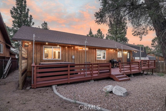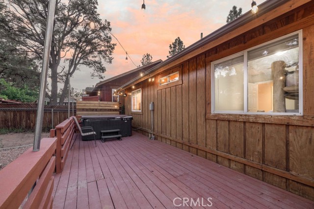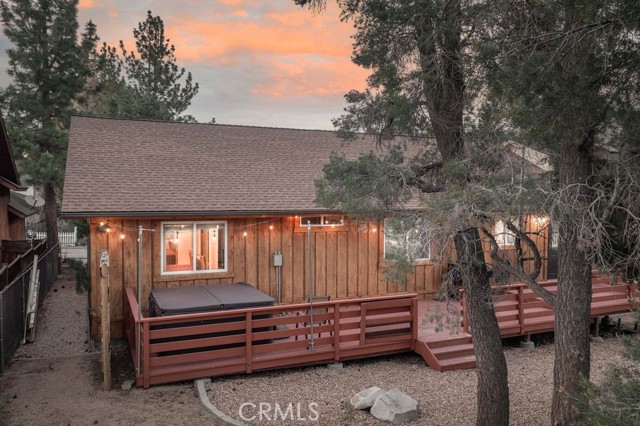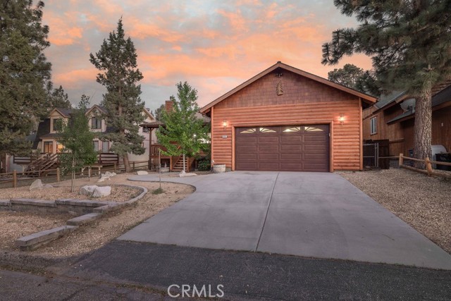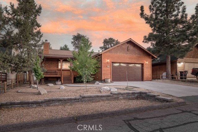 Welcome to your beautifully maintained mountain retreat in desirable Valley View pocket of Big Bear City! This charming 3-bedroom, 2-bath log-style home offers the perfect blend of rustic character and modern comfort—ideal for a full-time residence, second home, or long-term rental. Step inside to an inviting open floor plan featuring a cozy living area with a stone fireplace, perfect for cool mountain evenings. The living space flows effortlessly into the dining area and a well-equipped kitchen with newer appliances, ample counter space, and a functional layout perfect for both daily living and entertaining. Each bedroom is thoughtfully designed to create a peaceful and comfortable atmosphere. The spacious master suite features a private bath and serene mountain views, while two additional bedrooms provide great flexibility for family or guests. Enjoy outdoor living year-round with a large back deck ideal for relaxing or grilling, a covered front porch, and a fully fenced, newly landscaped yard. After a day of hiking or mountain biking nearby, unwind in the private Jacuzzi under the stars. This home also features a separate laundry room and an attached two-car garage, offering added convenience and ample storage for all your mountain gear. The quiet neighborhood sits just next to Maple Ridge and is close to the Maple Lane Trails and other outdoor recreation... and is just 5-8 miles from the lake, ski resort and many shopping & dining options in the Village! This is a home that you won't want to miss!!