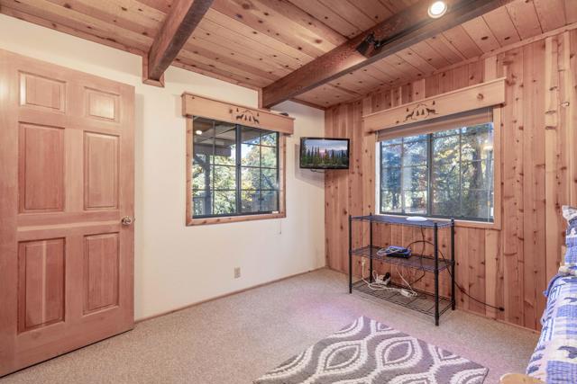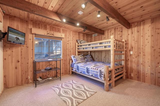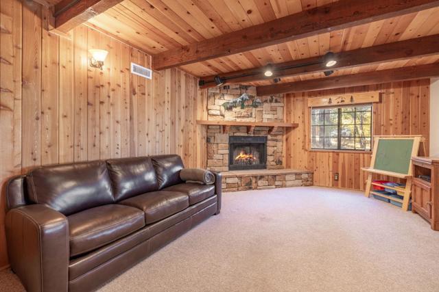 Located in the desirable Upper Moonridge area of Big Bear. Beautiful, treed setting with 2 large decks to take in the stunning mountain views. The huge living room has a gorgeous stone floor to ceiling fireplace. With 4 bedrooms there is lots of space for the whole group. The 4th bedroom is a bonus room with a door and cozy fireplace. The kitchen and bathrooms have been nicely updated. There is also a treehouse in the back for the kids to play in and a spa room to soak in after a day enjoying the great outdoors of Big Bear. You won't get too hot in the summer because this house is equipped with air conditioning too. Vacant lot next door is also listed. Own both to have a nice expansive spread, or build another home and have your own compound.