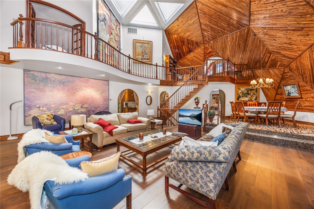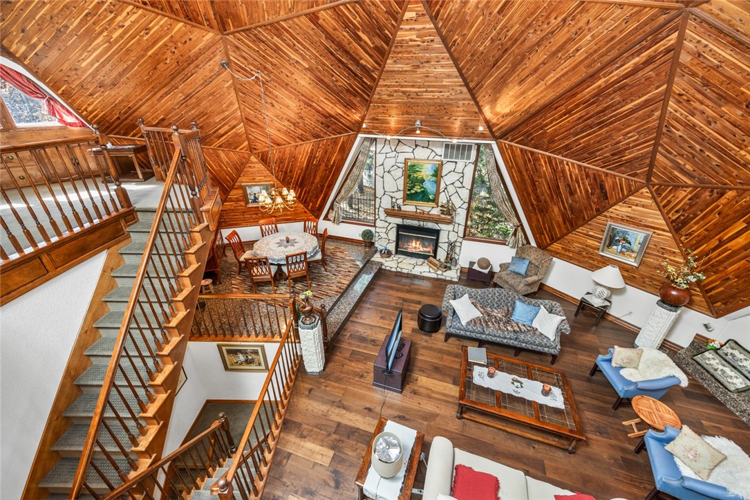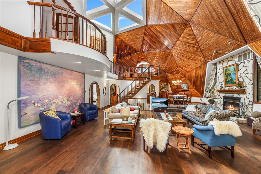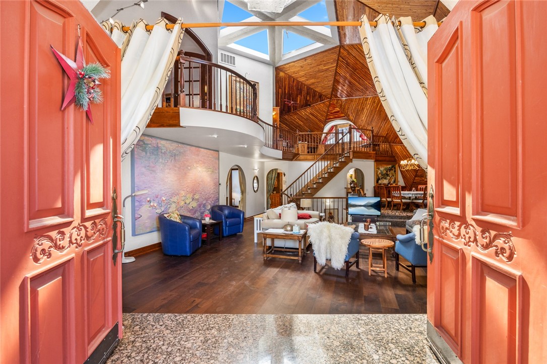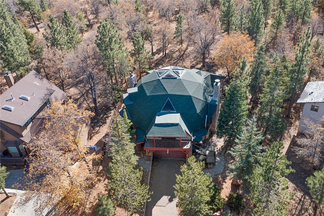 Beautiful Geodesic Dome Home in the upper Moonridge area of Big Bear City. Two master bedrooms, one with sauna. Backs to the National Forrest< hiking and beautiful views. Just minutes from Bear Muntain ski slopes. A haven for entertaining.Direct access to the entire forest from the backyard. Absolutely gorgeous. SELLER CHOICE OF ALL SERVICES.