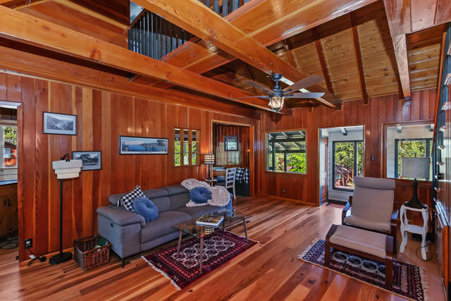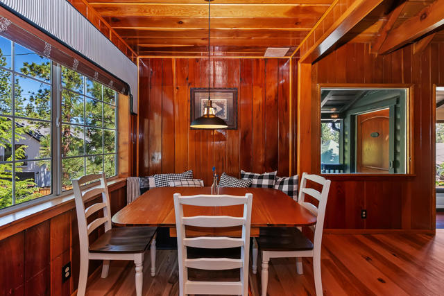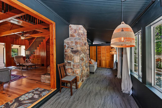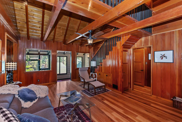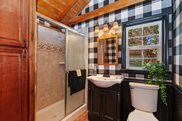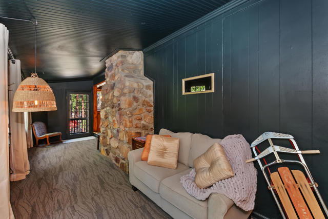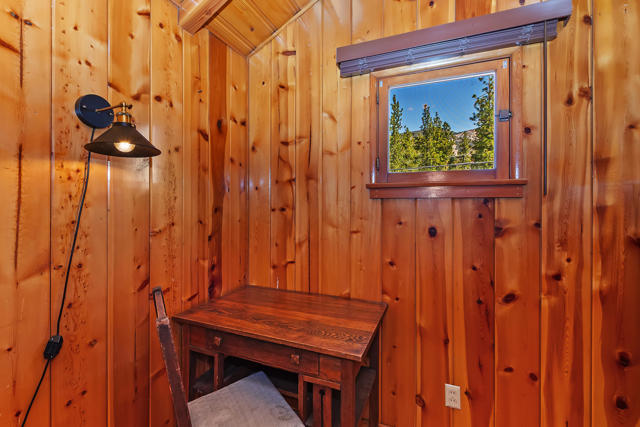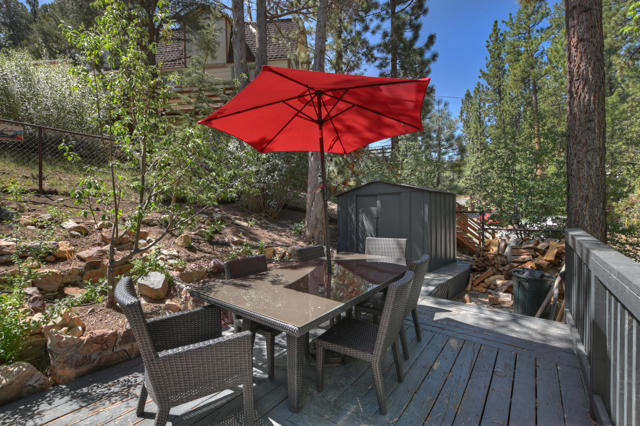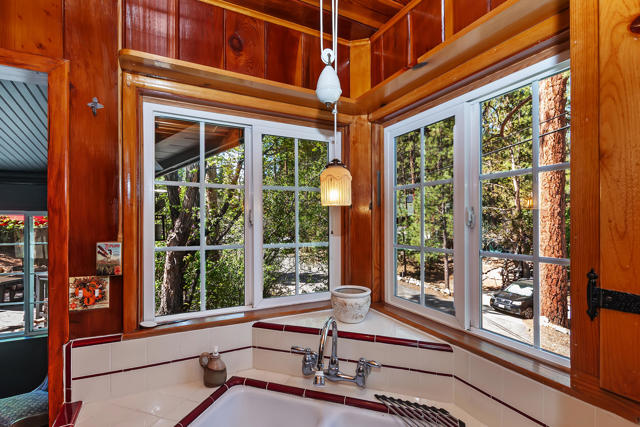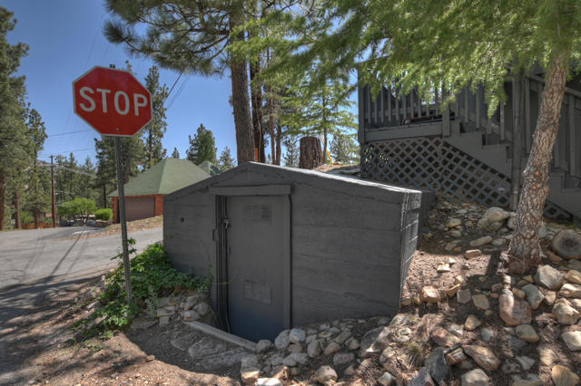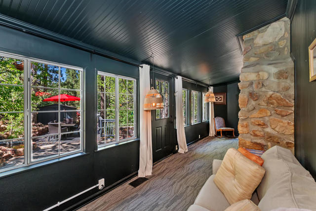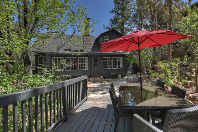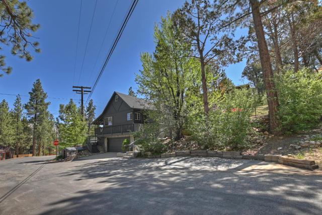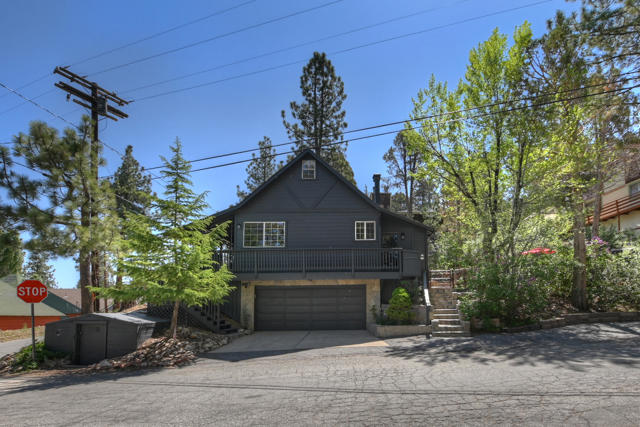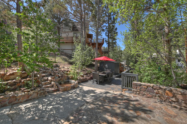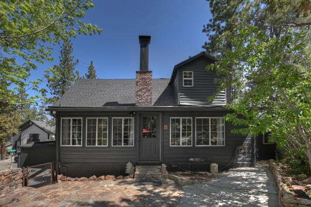 Nestled On A Corner Lot, This 1950s Gem Boasts A Stunning Floor-To-Ceiling Native Rock Fireplace And A Warm Knotty Pine Interior With Vaulted Ceilings. The Home Features Beautiful Hardwood Flooring, Including Hickory With Elegant Walnut Trim. The Main Level Offers A Comfortable Living Room, A Kitchen, A Sunny Sunroom, A Practical Mudroom And Laundry Area, A Bedroom, And A Full Bathroom. Upstairs, You'll Find Two Additional Bedrooms And A Bathroom With A Shower. The Third Bedroom, Currently Utilized As An Office, Is Non-Conforming, Offering Flexible Space. From The Sunroom, You Can Step Into A Relaxing Fenced Backyard. This Outdoor Haven Features A Native Stone Terraced Garden, A Tranquil Waterfall With A Pond, Established Trees, And Lilacs That Enhance The Sense Of Seclusion. The Spacious Hardscape Area Provides Ample Room For A Hot Tub, And The Patio Is Great For Hosting Barbecues. This Property Also Includes A Convenient Two-Car Garage With Extra Off-Street Parking. Nature Enthusiasts Will Appreciate The Lookout Hiking Trail Just A Block Away, Connecting To The Extensive Maple Hill Trails. You'll Also Find Nearby Shops, Stores, And Restaurants Within Easy Reach. The Property Is Approximately 5 Miles From Big Bear Lake Village And Bear Mountain Ski Resort/Golf Course, And About 2.5 Miles From The Shores Of Big Bear Lake. Adding To Its Appeal, The Cabin Has A Newer Roof, An Upgraded Heating System, And Updated Electrical And Plumbing. As A Bonus, A Cinderblock Storage Building Could Be Used For Root Or Wine Cellar And Inventory Of Furnishings Included..