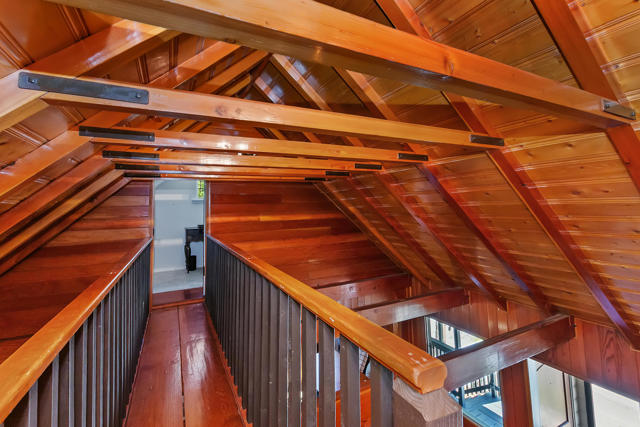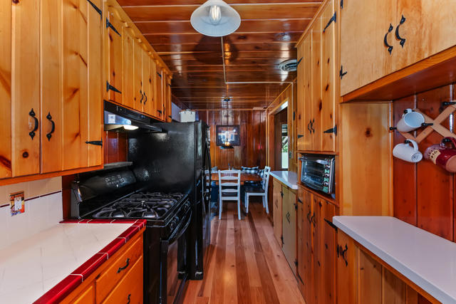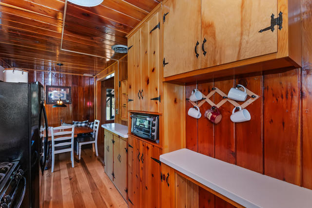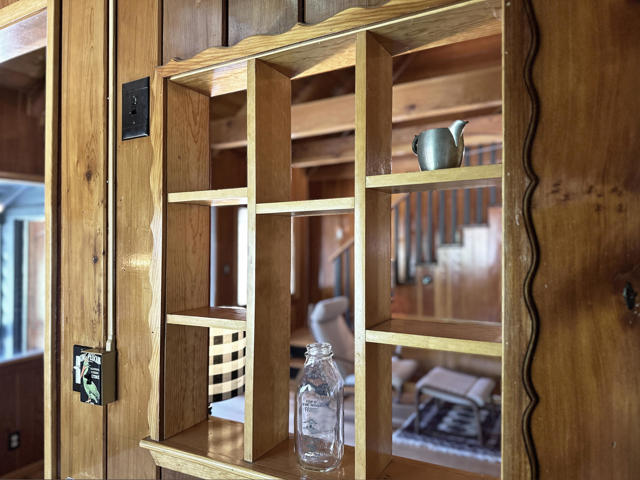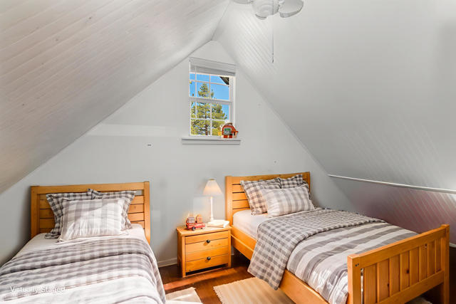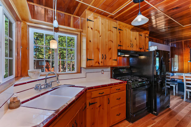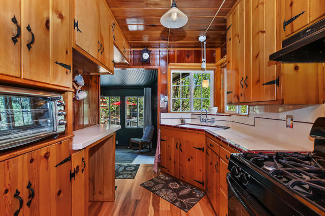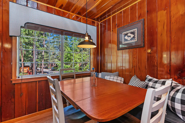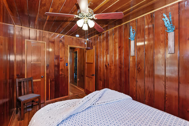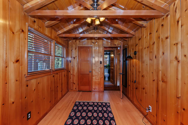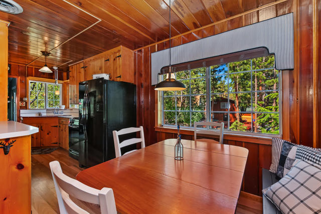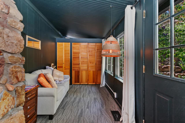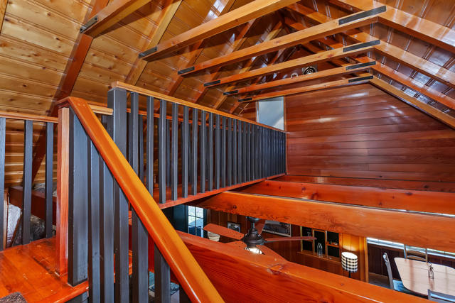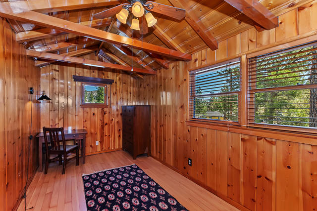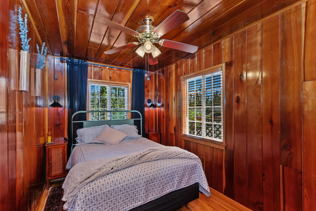 Nestled On A Corner Lot, This 1950s Gem Boasts A Stunning Floor-To-Ceiling Native Rock Fireplace And A Warm Knotty Pine Interior With Vaulted Ceilings. The Home Features Beautiful Hardwood Flooring, Including Hickory With Elegant Walnut Trim. The Main Level Offers A Comfortable Living Room, A Kitchen, A Sunny Sunroom, A Practical Mudroom And Laundry Area, A Bedroom, And A Full Bathroom. Upstairs, You'll Find Two Additional Bedrooms And A Bathroom With A Shower. The Third Bedroom, Currently Utilized As An Office, Is Non-Conforming, Offering Flexible Space. From The Sunroom, You Can Step Into A Relaxing Fenced Backyard. This Outdoor Haven Features A Native Stone Terraced Garden, A Tranquil Waterfall With A Pond, Established Trees, And Lilacs That Enhance The Sense Of Seclusion. The Spacious Hardscape Area Provides Ample Room For A Hot Tub, And The Patio Is Great For Hosting Barbecues. This Property Also Includes A Convenient Two-Car Garage With Extra Off-Street Parking. Nature Enthusiasts Will Appreciate The Lookout Hiking Trail Just A Block Away, Connecting To The Extensive Maple Hill Trails. You'll Also Find Nearby Shops, Stores, And Restaurants Within Easy Reach. The Property Is Approximately 5 Miles From Big Bear Lake Village And Bear Mountain Ski Resort/Golf Course, And About 2.5 Miles From The Shores Of Big Bear Lake. Adding To Its Appeal, The Cabin Has A Newer Roof, An Upgraded Heating System, And Updated Electrical And Plumbing. As A Bonus, A Cinderblock Storage Building Could Be Used For Root Or Wine Cellar And Inventory Of Furnishings Included..
