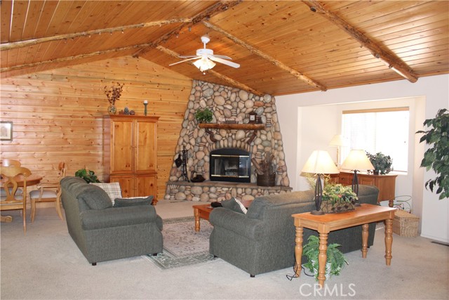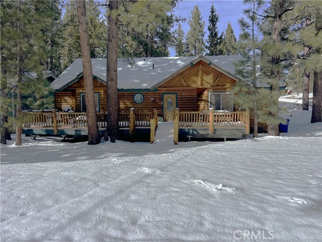 Significant price reduction!! Brand new sanding/recoating of the log siding, deck, door, & railings. Owner says there is potential space for the construction of a 2-car garage. Come see this LOG-style home nestled in the quiet Pinewood Estates neighborhood of Big Bear. Enjoy cozy times centered around the corner stone fireplace in the open great room. Log and pine tongue-and-groove accents throughout give the "mountainy" feeling visitors crave. The many conveniences and features include: dishwasher; laundry area; furnishings; spatious level pine-treed corner lot; front and back decking; hiking trails & ski areas nearby; and a short distance to the Convention Center (Oktoberfest, etc.) and SnowPlay tubing. Don't miss this 3 bedroom/2 bath, 1-story home, so centrally located, yet certainly off the beaten path.