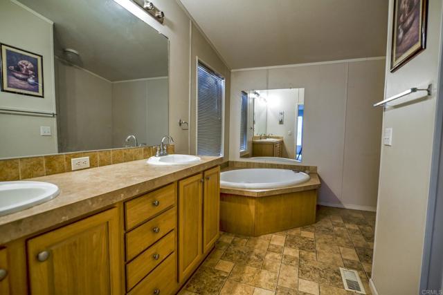If you long for great fun in the desert this property is for you! Located in Borrego Springs only 4 mile from the airport right off Split Mountain Rd. This 3 Bedroom, 2 bath beautiful manufactured home built in 2007 has all that you need for year round living. As you approach the home you will notice that it sits on a large l100 x 300 rectangular shaped lot that is fully fenced. It has a well 125 deep with a bladder that hold 60 gallons. It has 2 1/2 horse pump with a pump house. 2 sea containers 10 x 40 have permits with the county. The 1,000 gallon septic tank is 2 years old. Living area is a large 1387 square foot home. It boasts 200 AMPS electrical system throughout, a 50 gal water heater, 5000 BTU AC unit and it is equipped with an automatic sprinkler system. Popular neutral beige flooring and walls make a perfect canvas for all your personal decorating ideas. Spacious kitchen has beveled glass cabinet doors, large pantry for your dry goods, extra outlets for all your portable appliances. Dishwasher, refrigerator plumbed for an ice maker will convey. Dining area will accommodate a table for six. Overhead fixture is an upgraded brushed nickel chandelier. The living room and master bedroom are pre-wired for ceiling fan. Master bedroom suite offers mirrored wardrobe doors and a huge bathroom with sunk-in bathtub, his and hers sinks and a semi private area for taking care of business. The other two bedrooms are located at the opposite end of the home and they share a full bathroom