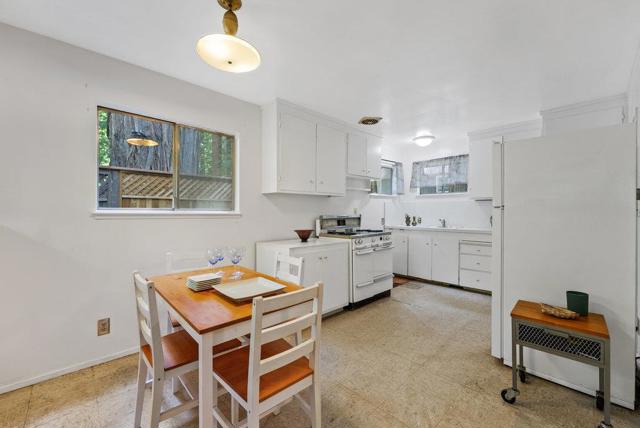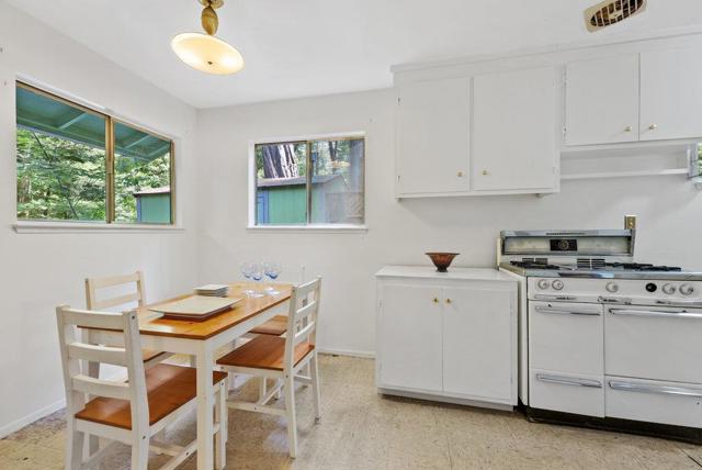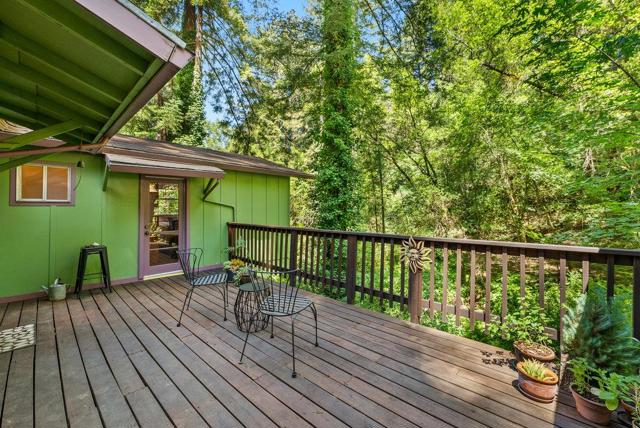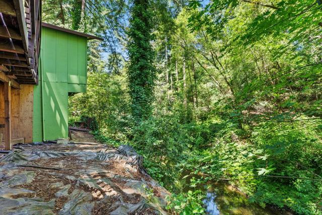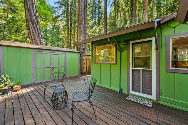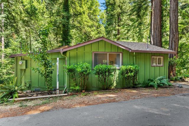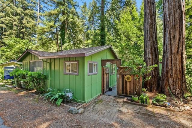 1930s cabin in the woods. This 2 bed, 1 bath Cottage on Bear Creek. It is in a Stock Coop: 24 homes share 12 acres. The fixer upper could use a new roof, AS IS, upgrade the rest to your taste. The vintage stove, and rock and brick hearth in the living room, may be part of the charm to keep. Enjoy the fenced private deck overlooking Bear Creek, and storage shed with Washer Dryer hookups. Is it an office space, studio, or simply storage in your future home? Walk into Boulder Creek, commute to the North cities, or Santa Cruz. Low HOA covers water, garbage, road & common area maintenance, clubhouse, BBQ area, and private trails to the Creek Beaches & arborist. Bear. Creek Stock co-op. requires ALL CASH or non conventional loan, ask me about it. Park Approval required. Ideal for a permanent residence or second home. Speed limit is 5 miles an hour.