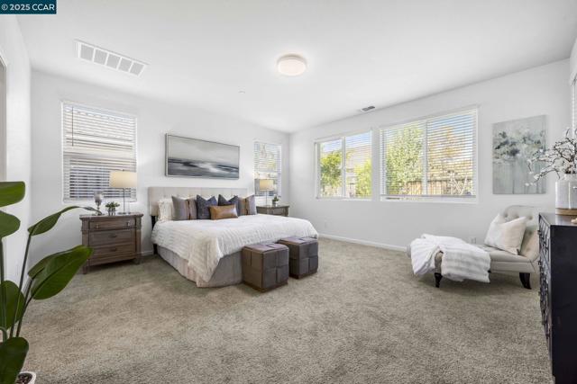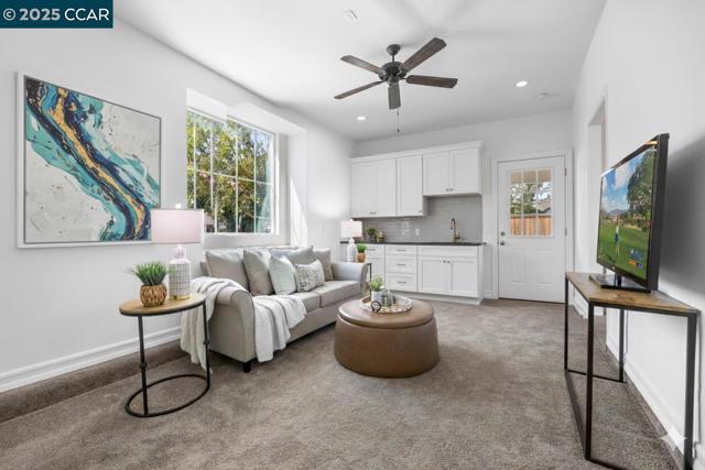 Beautifully upgraded two-story home in a desirable Brentwood neighborhood! This spacious residence offers modern comfort and flexible living options, featuring a converted garage that can serve as a game room, private casita, home office, or rental suite with its own entry. Inside, the open-concept design features a spacious living area and a sleek, modern kitchen — refrigerator, washer, and dryer included for a truly move-in ready experience. Just off the kitchen, you’ll find a dedicated tech area ideal for remote work or homework, along with a convenient laundry room featuring cabinetry and ample storage. The main level includes two primary bedrooms, one with private access, ideal for guests or multi-generational living. Upstairs, a generous loft and large secondary bedrooms. Energy-efficient solar panels and an EV charging station add value and sustainability. Enjoy a private backyard oasis with lush pomegranate and fruit trees — perfect for outdoor gatherings. Move-in ready and designed for today’s lifestyle, this home blends luxury, versatility, and efficiency in one incredible package!