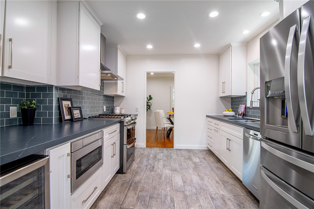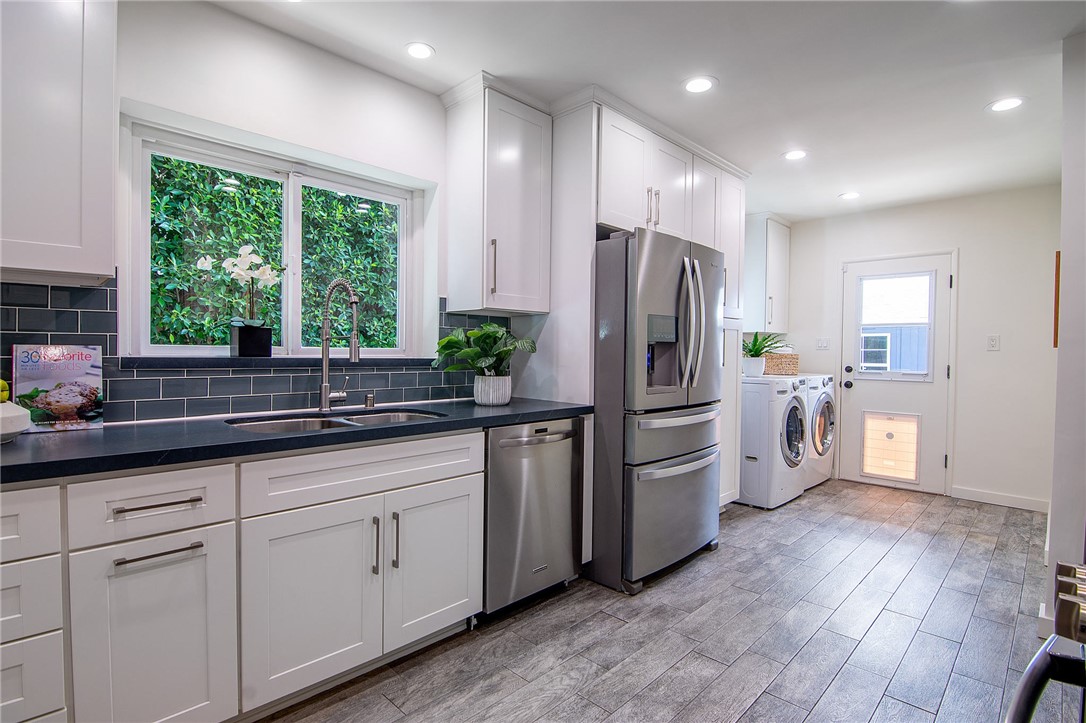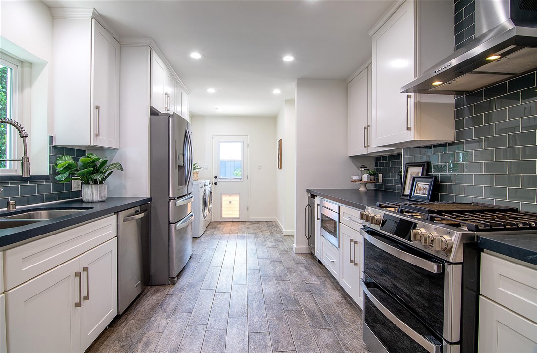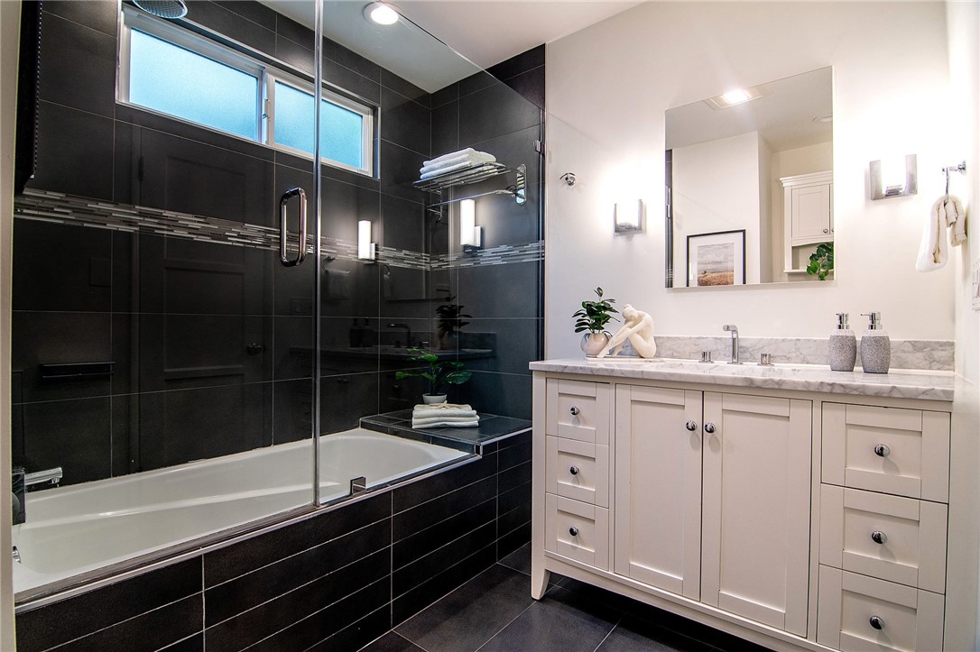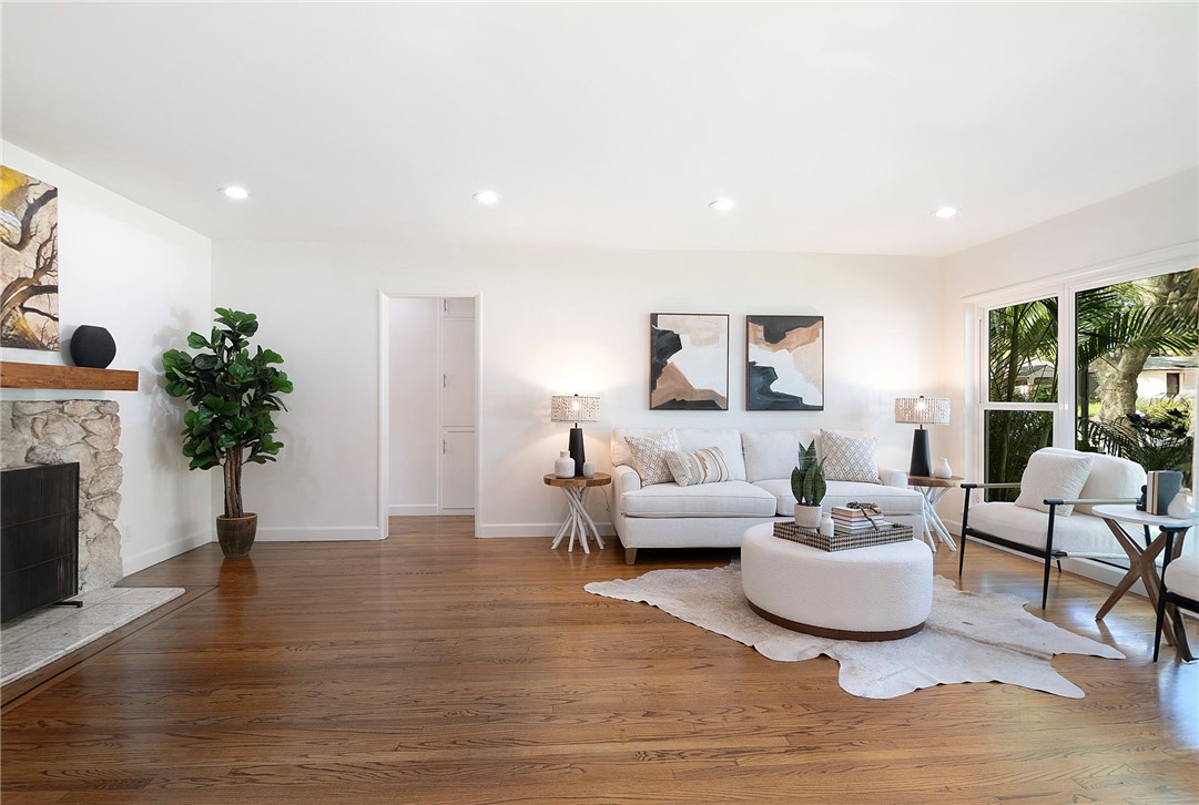 On a pretty tree lined street, this mid century pool home in the Rancho Equestrian District has been completely remodeled and upgraded and is strolling distance to Disney. Gorgeous curb appeal leads you into a modern contemporary home, with an ideal circular floor plan. The living room with large picture window (to watch the parade of horses go by) has a fireplace and opens to the dining room. The newer chef’s kitchen features soapstone Quartz counters, glass tiles, and a full suite of appliances including a drawer microwave and wine fridge. Hardwood floors throughout with the bedrooms also having plantation shutters. The well-appointed primary bath with marble counter has a deep soaking tub. The best part of the day: throw open the French doors to your tropical paradise with Hawaiian inspired landscaping and enjoy morning coffee or cocktails by the heated pebble-tec pool. Exceedingly private, the backyard has 8 foot Redwood fencing, a 33 Ficus hedge and a wall of Hollywood Juniper. Newer roof, Milgard windows, and insulated attic. Updated electrical and lighting. 2 car detached garage. Blocks to cafés, coffee houses, shopping, tennis, ice skating, basketball courts and children’s playground, parks and LILA private school. Minutes to DTLA. Close to Griffith Park (quick access over the horse bridge to 50 miles of trails), the Equestrian Center and all the studios: Disney, Warner Bros, Nickelodeon, NBCUniversal. Legendary Burbank schools and services. The perfect neighborhood for living the good life!