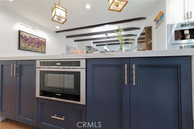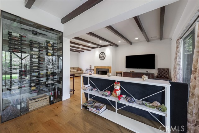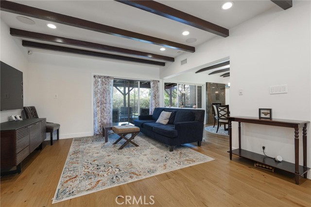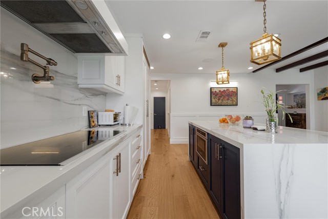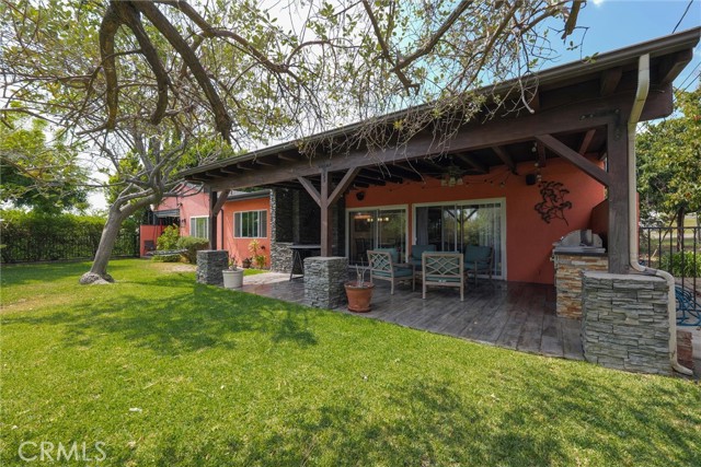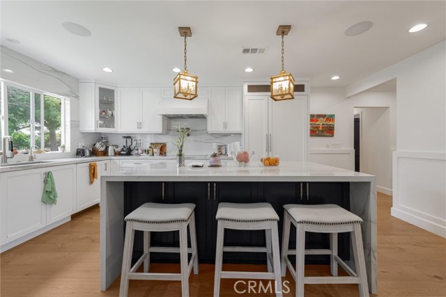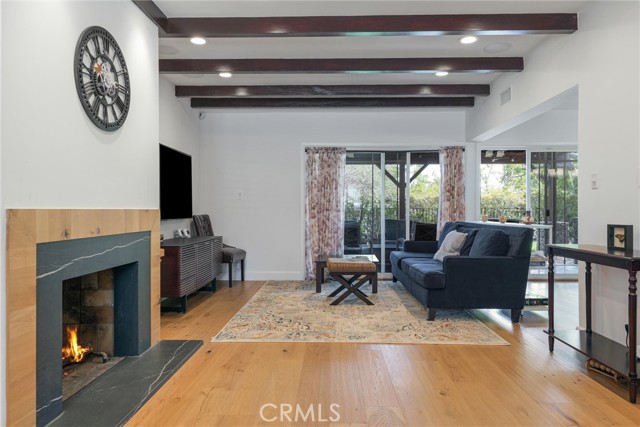 Welcome to this stunning Mid-Century home, thoughtfully updated to blend timeless charm with modern convenience. Offering 3 bedrooms, 2 bathrooms, and 2,025 square feet of living space, this residence is perfect for both everyday living and entertaining. The inviting foyer opens to a spacious living room with a cozy fireplace on one side and a formal dining room with its own fireplace leading to the kitchen on the other. The chef’s kitchen is a true showpiece, featuring quartz countertops, custom cabinetry, and a full suite of Bosch appliances, including the refrigerator, stove, oven, dishwasher, microwave, and built-in coffee machine. The home is finished with hardwood flooring throughout, complemented by custom woodwork and exposed beam ceilings in the living room, creating warmth and character in every space. The luxurious primary suite offers built-in closets, a spa-like soaking tub, separate shower, and direct access to a private slate patio. Additional features include a video surveillance system, EV charger, built-in surround system speakers for home theatre, new water softener and water filtration system, central air, and built-in speakers in the patio, living room, kitchen, and primary suite/bathroom. The backyard is an entertainer’s dream, complete with a covered patio, ceiling fans, built-in BBQ, and a fire pit for year-round enjoyment. Set on an 8,050 square foot fully fenced lot, the property also offers mature landscaping and a garden shed. Located in one of Burbank’s most desirable neighborhoods and within top-rated school districts, this home combines comfort, convenience, and style for the lifestyle you’ve been waiting for.
