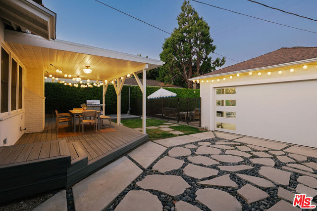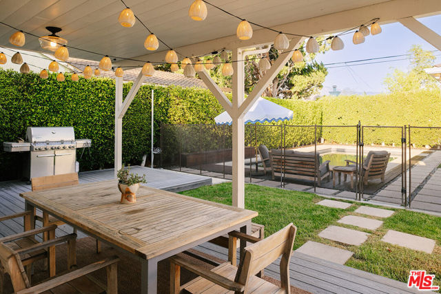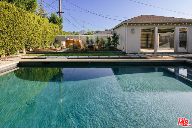Chic 1950s Bungalow with Pool & Artist Studio in Prime Location. Stylish, fully remodeled 3-bed, 1-bath 1950s bungalow blending mid-century charm with modern upgrades. The open-concept chef's kitchen perfectly flows into bright living spaces, ready for entertaining. Finished garage with A/C offers flexibility as an artist's studio, home office, or potential ADU. Enjoy ultimate outdoor living with a heated pool and jacuzzi surrounded by a custom Ipe deck, covered Trex deck for al fresco dining, and lush privacy hedges enclosing a garden with raised veggie and herb beds. Smart features include keyless entry, Nest thermostat, and wired 5-point surround sound. Located minutes from Disney, Warner Bros., the vibrant shops and cafes of Toluca Lake and Magnolia Park, this home offers resort-style comfort with unbeatable LA convenience. Experience the perfect balance of mid-century charm, modern design, and SoCal indoor-outdoor living in one truly special home.