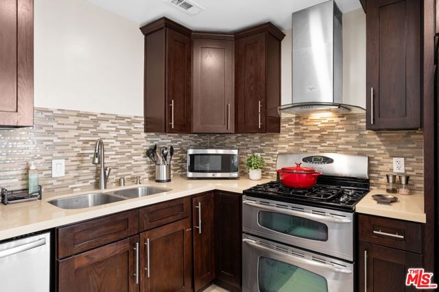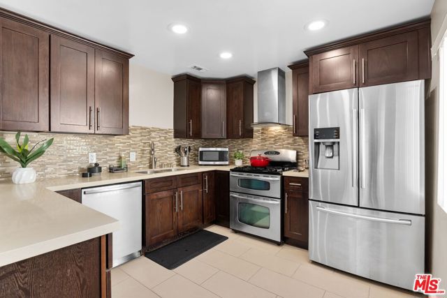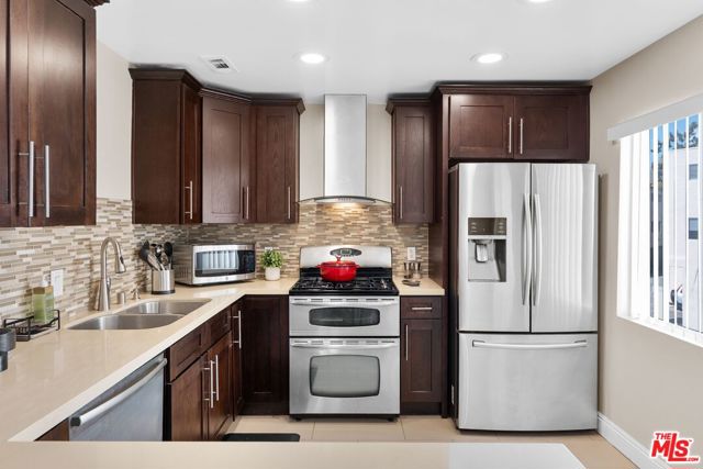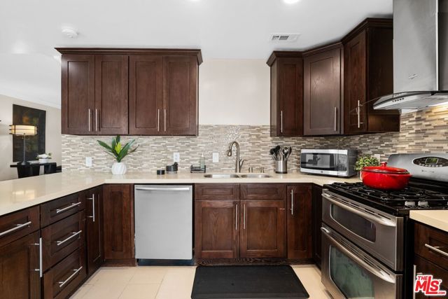 Welcome to this stunning Cabrini townhouse! This remodeled home boasts incredible views and is ready for you to call it HOME. The spacious kitchen has been completely renovated with gorgeous quartz counters, beautiful tile, and stainless steel appliances. The main level offers an open concept design with a dining area, recessed lighting, cozy fireplace, and a patio that overlooks the breathtaking views. Upstairs, you'll find two bedrooms, one of which offers stunning views of the valley. The garage level of this home offers a bonus room that's perfect for a home gym, storage, or office, and there's also a direct access private 2-car garage. Brand new A/C unit installed in 2023 and new water heater installed in 2021. But that's not all - the Cabrini Villas community has 7 sparkling pools, tennis courts, pickle ball court, a park, playground, spas, sauna, basketball court, and a recreation room. Plus, the HOA fees include water, cable, and internet, as well as around-the-clock security patrols. Don't miss out on the opportunity to make this stunning townhouse your new home. Remember that this is a Burbank zip code, but is located in the city of Los Angeles, and has all Los Angeles city services including schools and utilities.