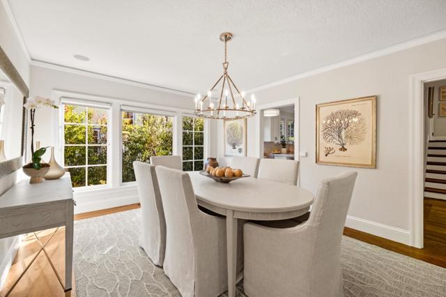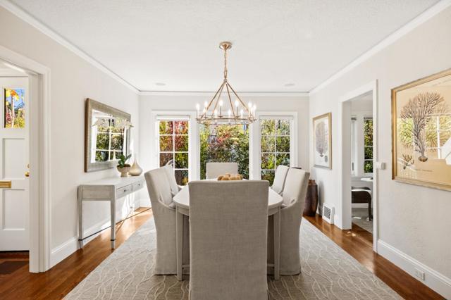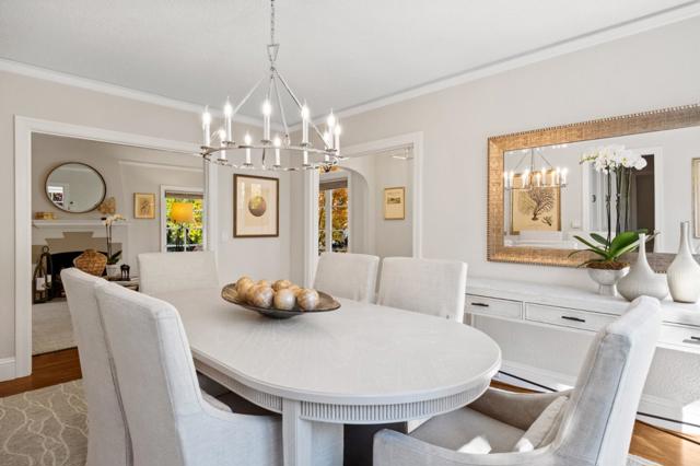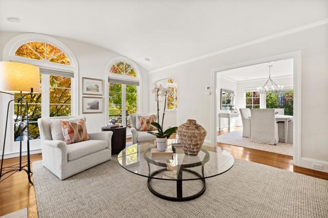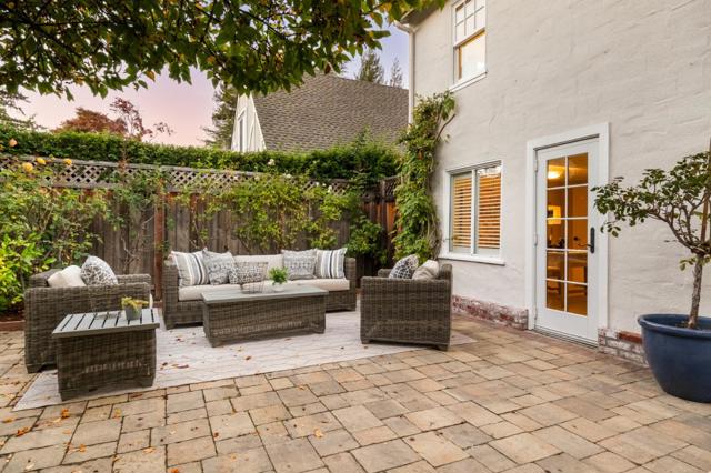 Beautifully updated Spanish-style home enjoys an A+ location in highly desirable Burlingame Park, surrounded by tree-lined streets of classic, character-filled homes and just a short stroll to the boutiques and restaurants of Burlingame Avenue. Freshly painted inside and out, a split-level design with 4 bedrooms and 2 baths. Classic curb appeal showcases a red tile roof, arched front windows, and decorative ironwork at the entrance and on balconettes. A barrel-vaulted ceiling crowns the formal living room, which has Art Decoinspired tile on the fireplace and signature arched front windows. The formal dining room has a contemporary wagon wheel chandelier and wall of windows. The updated eat-in kitchen features Carrara marble counters, white cabinetry, and premium stainless steel appliances. The lower level features a large family/recreation room plus a dual-entry bath shared with a private. Upstairs is an expanded primary suite with separate sitting room also ideal for an office or nursery, a walk-in closet, and limestone bath with jetted tub and separate shower. An additional bedroom is located on this level. Central air conditioning. Detached 2-car garage with French doors to the yard. Minutes to Pershing Park, plus access to excellent Burlingame schools.