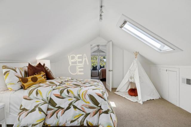 Set on a spacious 6000sf lot just two blocks from the Broadway downtown, this Burlingame classic feels cottage-charm-cozy but lives large! Customize this array of flexible spaces to create the multifunctional home environment that you need now and tomorrow. The main level includes living and dining rooms, a big kitchen and adjacent laundry room, the large primary suite retreat with its vaulted ceiling, walk-in closet and sunny en suite bath, two additional bedrooms, one of which is currently used as an office, and a hall bath. Upstairs are two additional rooms and a half bath - bedrooms, playroom, office ... you decide. A bonus room behind the detached garage is a quiet office or lively rec room. Upgraded systems include owned solar and AC. The west-facing backyard is private, sheltered and sunny, with giant hydrangeas filling the corners like cheerful old friends. Burlingame schools!
