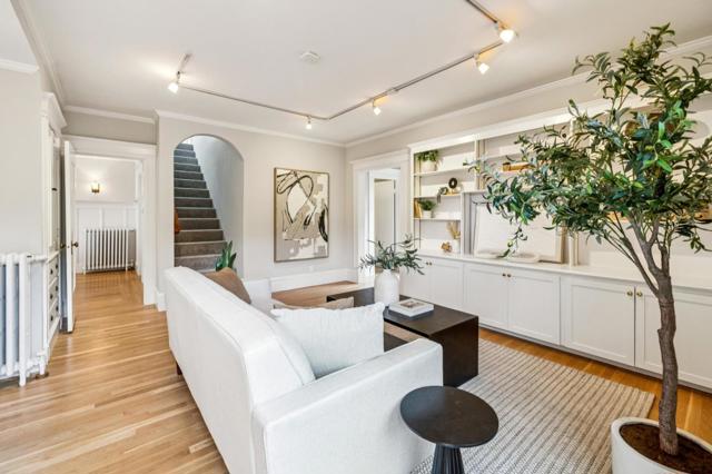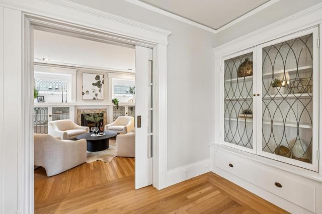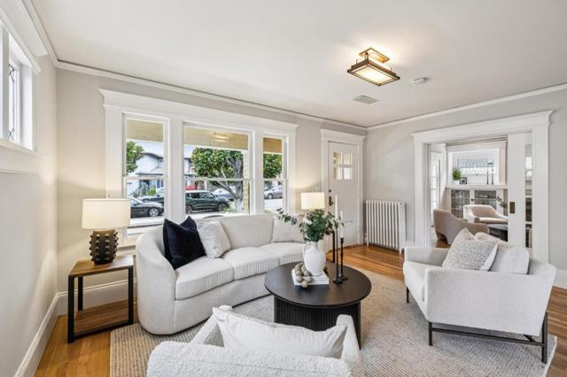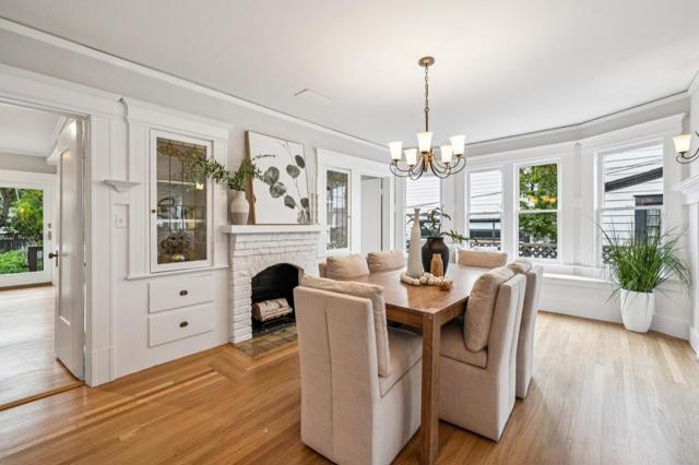 In the heart of Burlingame, this bright 1911 Craftsman gem captures period details and modern living. The home offers three bedrooms and three baths for all your needs. Newly refinished hardwood floors, fresh paint, and details such as moldings, wood trim, and leaded glass, enhance throughout. The living rooms, with decorative fireplace and pocket door, are next to a sunroom. The dining room, featuring a window seat and fireplace, offers a cozy setting. This first level is complete with a hall bath and bedroom. The kitchen is equipped with an island, gas cooktop, box bay window, double oven, and an adjoining great room with built-ins. This area seamlessly flow to the yard for indoor/outdoor entertaining. The newly carpeted upper level comprises two bedrooms, including a primary with an en-suite bath, office, bath, laundry area, and an open space for play. Enjoy a lush, landscaped backyard with an Ipe deck, pergola, and fountain perfect for relaxation. This prime location is walking distance to Burlingame Ave. and Broadway for dining and shopping, schools, and easy access to CalTrain and transportation for an easy commute to SF and Silicon Valley. Tax records show 1 bedroom & 1 garage. Floor plan vendor measured 2402 sf. Buyers are encouraged to investigate to their satisfaction.