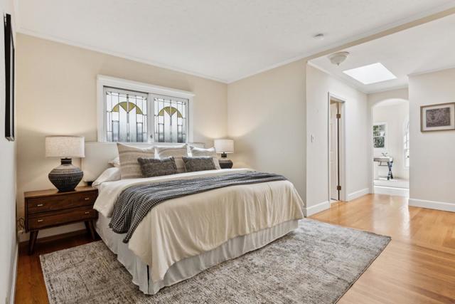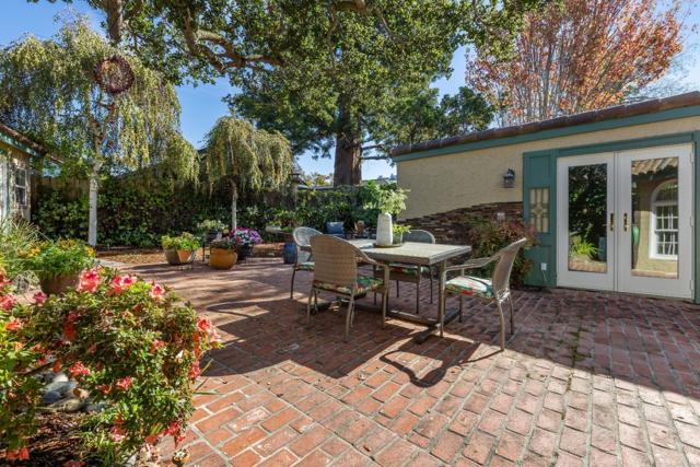 Architectural Gem within an easy walk to downtown Burlingame Avenue! Many custom updates for this 2 bed, 2 full bath, plus Office single-story layout. Perfect blends of 1920s classic character with modern entertaining flow. Great Room party feeling with "opened up" dining room and huge chef's kitchen with Sub-Zero/Wolf, and breakfast room leading seamlessly to enchanted courtyards and gardens. Deep lot features a deluxe storage building that matches the home's architecture, as well as detached 2-car garage set behind electronic gate. A world of character and custom quality, and the full downtown Burlingame experience walk-friendly!