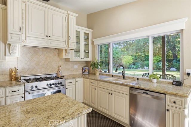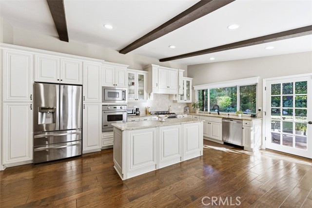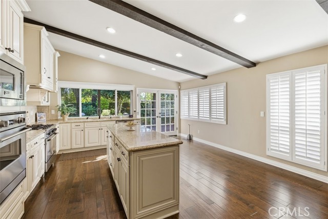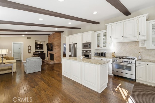 Beautiful Single-Story Home in the Greater Mulwood Community – Prime Location! Welcome to this exceptionally well-maintained and spacious single-story home located in the highly sought-after Greater Mulwood neighborhood. Situated near top-rated Las Virgenes schools, this property offers a rare opportunity to own a home with incredible bones, an open layout, and abundant potential. Key Features: Updated Chef’s Kitchen: A large, modern kitchen featuring high-end Viking and Bertazzoni appliances, an expansive center island, and plenty of storage—perfect for entertaining. The kitchen opens seamlessly to a welcoming family room with a charming brick fireplace and built-in bar. Private, Gated Courtyard: Enter through a double-door entryway set within a spacious, gated front courtyard—ideal for added privacy and outdoor enjoyment. Bright & Open Living Spaces: The home is filled with natural light, enhanced by wood-beamed vaulted ceilings, recessed lighting, and views of the serene backyard from multiple rooms. High-Quality Finishes Throughout: Includes double-paned windows and sliding doors, custom plantation shutters, hardwood and tile flooring, and updated fixtures. Spacious Primary Suite: The oversized primary retreat features a cozy wood-burning fireplace, a custom built-in wood desk, a large walk-in closet, and a luxurious en-suite bathroom with a double sink vanity, Travertine walk-in shower, and custom glass enclosure. Additional Amenities: Separate laundry room Two updated powder rooms—one near the kitchen/family area and another adjacent to the three large secondary bedrooms Each secondary bedroom includes oversized closets Generously sized, private backyard with room for a pool and several mature fruit trees This home offers a highly desirable layout, timeless updates, and a location that can’t be beat. Whether you're looking to move right in or customize further, this is a truly special opportunity to make it your own.