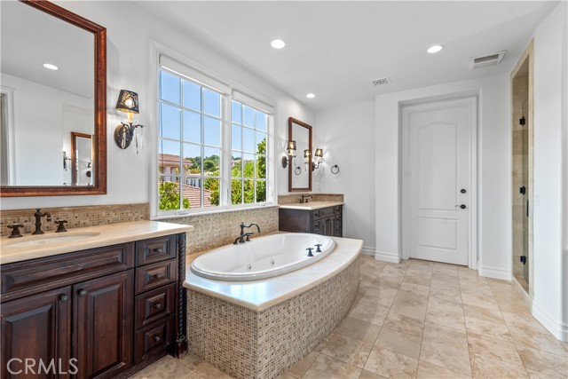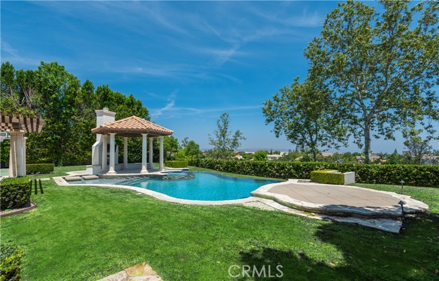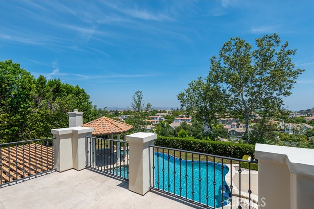 Back on market! Sweeping views highlight this beautifully upgraded home. Model sharp throughout, this New Millennium Classics Plan 2 is light and bright with a sunny, open floor plan. The home features 6 bedrooms (including the courtyard casita with bath) plus a custom office, a nicely remodeled chef's kitchen with center island that opens to the family room highlighted by wood floors and cozy fireplace, plus there's a spacious living & dining room combination that's perfect for casual entertaining. The generous primary suite offers an all stone bath, dual custom closets, cozy fireplace, big picture windows, and a walk-out balcony with views over The Oaks and to the mountains beyond. The spacious, very private and lushly landscaped grounds include an Infinity edge pool, spa, gazebo with fireplace and T.V. center, large BBQ center, a sports court, two covered patios, and courtyard entry with fountain. This turn-key home is move-in ready.