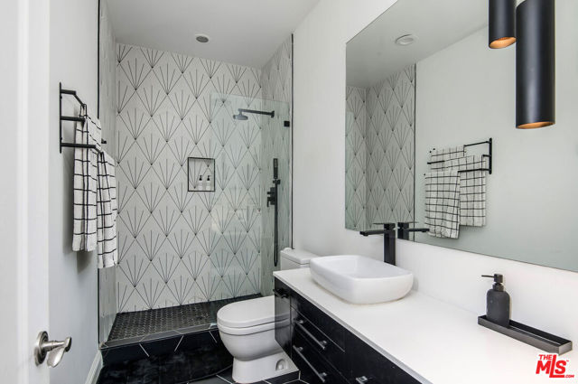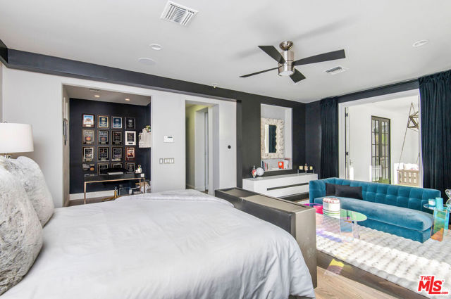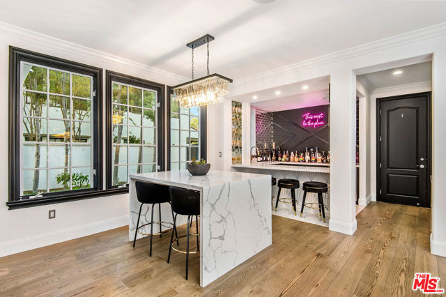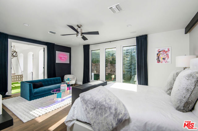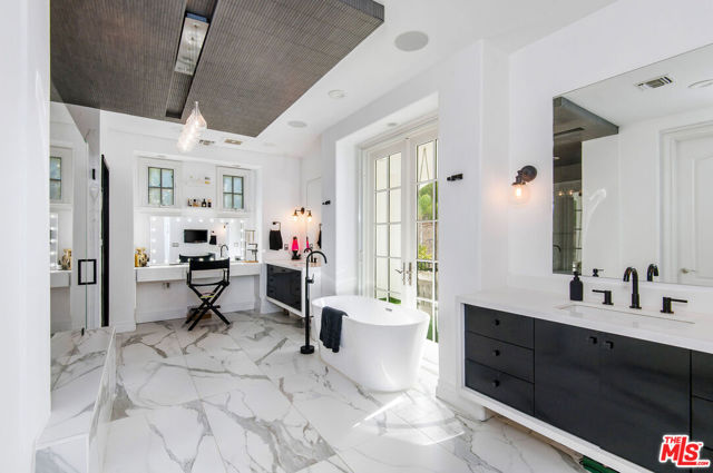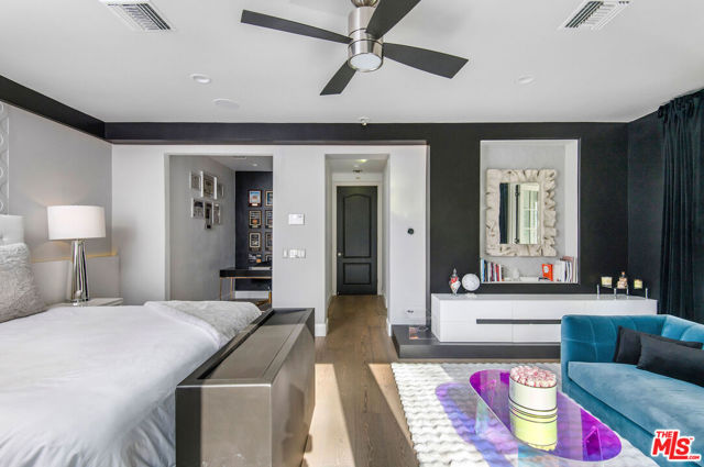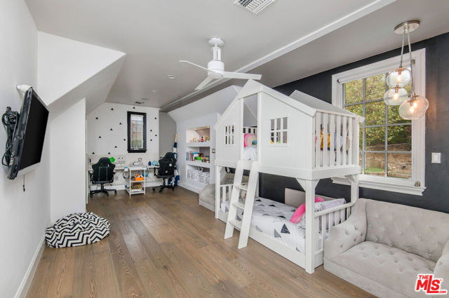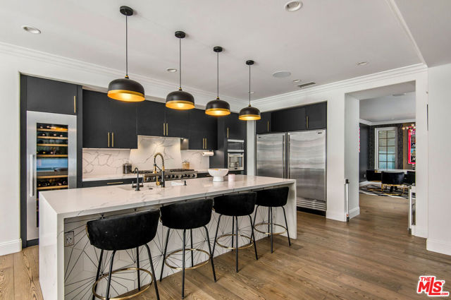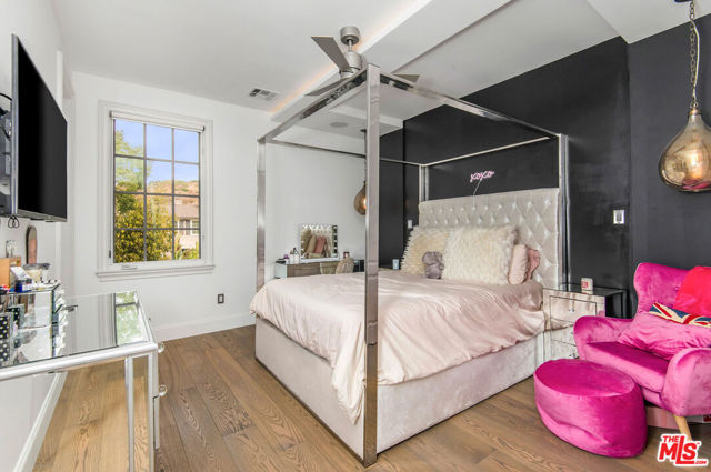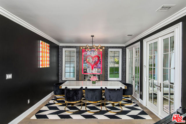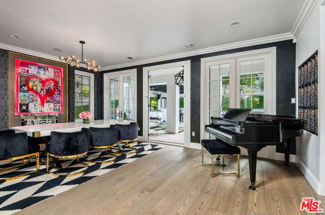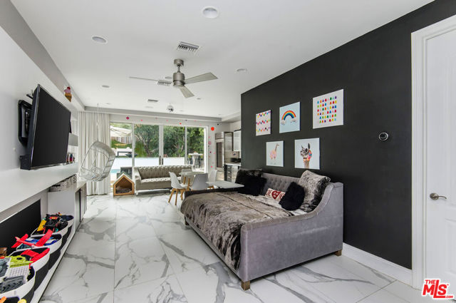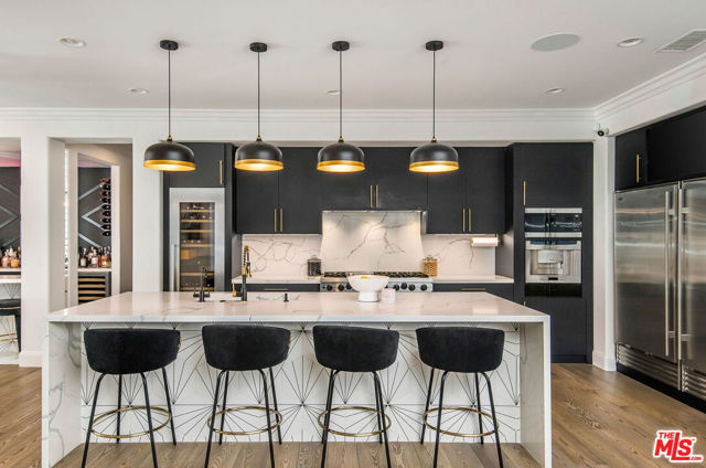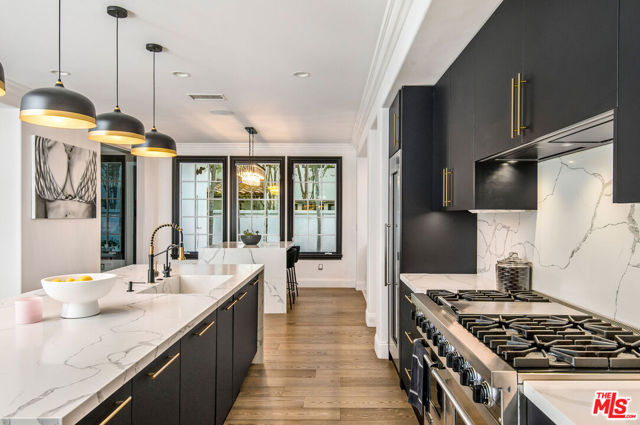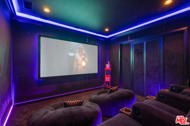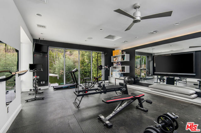 Situated on a coveted corner lot in the exclusive gated community of The Oaks, this stunning estate offers unparalleled privacy and luxury living. Spanning expansive wrap-around acreage, recently updated park-like landscaping and unmatched appeal, the property boasts exceptional outdoor features including a private sport court and a resort-style pool and spa. The outdoor entertaining area includes a covered lounge with a BBQ bar, as well as elevated hillside seating areas, offering a secluded retreat perfect for relaxation and entertaining. Inside, the home exudes stylish sophistication with a modern artistic flair. The expansive family room features a custom modern fireplace and seamlessly flows into a state-of-the-art kitchen, complete with a waterfall stone island bar and striking backsplash. A custom-designed entertaining bar lounge and tasting area further enhance the home's appeal for hosting. A thoughtfully designed kids' lounge is equipped with a fridge, play area, storage, and entertainment space, providing the perfect environment for family living. The lower level also includes a private-entry en suite bedroom, ideal for guests or extended family.The home's state-of-the-art theater room offers a custom cinematic experience, while the second level features four beautifully designed en suite bedrooms, each with unique styling. A cozy living room lounge and a private gym with floor-to-ceiling windows overlooking lush greenery add to the estate's appeal. The primary suite is a luxurious retreat, featuring a custom walk-in closet with accent lighting and a spa-like bathroom with double vanities, an oversized shower, a walk-in dry sauna, and a private glam space. This modern hideaway embodies sophistication and comfort, offering a rare opportunity to experience life in one of Calabasas' most sought-after neighborhoods.With exceptional amenities, ultimate privacy, and breathtaking views, this estate truly redefines luxury living behind the prestigious guard gates at The Oaks.