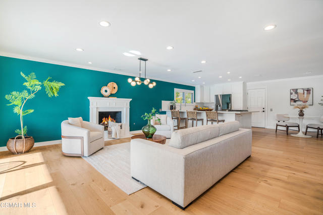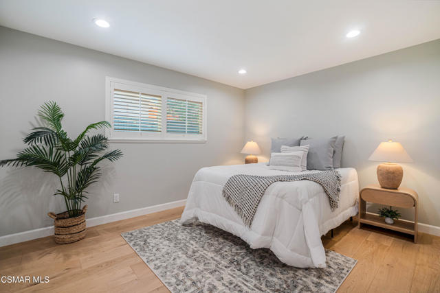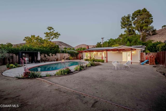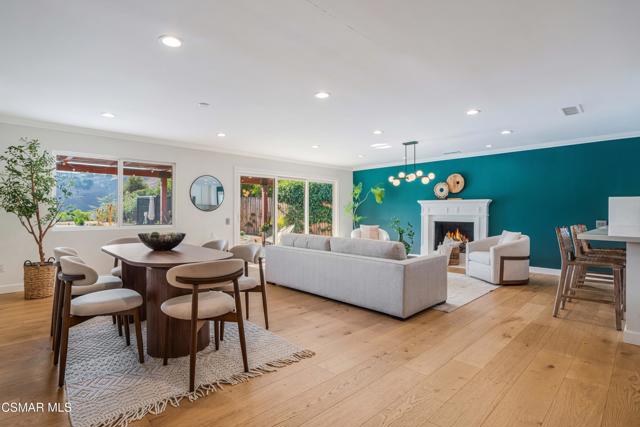 Welcome to this beautifully reimagined private, sun-drenched oasis, nestled in one of Calabasas' most sought-after neighborhoods. This sophisticated single-story home offers a bright and airy layout filled with natural light, where new wide-plank light oak hardwood floors stretch across open living spaces. The main gathering area features a sleek fireplace, stunning ''Empress Teal'' accent wall and floor-to-ceiling windows, and oversized sliding doors that invite the outside in, creating an inspiring atmosphere for relaxing or entertaining. A stylish dining space flows into a state-of-the-art kitchen complete with custom cabinetry, large center island, polished quartz countertops, high-end stainless appliances, and smart storage built for modern living. With four generously sized bedrooms with remodeled guest bath with new vanity, including a front facing primary bedroom and remodeled en suite bath. A versatile bonus room opens directly to the backyard, ideal for a home gym, creative studio, or private guest quarters. Outside, your personal paradise awaits. Cool off in the crystal-clear (recently converted) saltwater pool, unwind under a strikingly beautiful redwood cover, or host unforgettable evenings on the expansive patio. Panoramic views of the surrounding mountains provide a stunning daily backdrop, giving you the feeling of living in European hillsides. The home also boasts a premium NEM2 solar system, ready to keep energy bills nearly nonexistent. Recent updates include a brand-new roof (2023 w/10 yr warranty), upgraded 200-amp electrical panel with extra circuit, EV charger, new hardwood floors including leveling of the floors, installed recessed lighting throughout, new HVAC ductwork, new drip system, new linen closet in hallway, 2 guest rooms with California Closet organizers and storage, new closet doors in 1 guest room to triple rack. Ideally located just minutes from acclaimed Las Virgenes schools, hiking trails, boutique shopping, fabulous restaurants, convenience of the 101 freeway, and the legendary beaches of Malibu, this turnkey property delivers the ultimate Calabasas lifestyle. Elegant, efficient, and effortlessly connected to everything that matters.