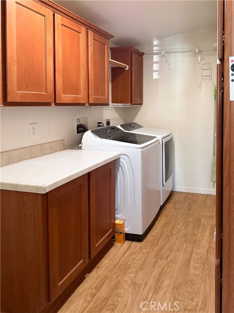 Beautiful home in a highly sought after 55+ community with resort style living! This home has 2 bedrooms, 2 baths, den, fireplace, fenced in backyard, front porch & loaded with upgrades. The laminate flooring is always a plus, newer dual pane windows can certainly assist with energy efficiency as well as the newer a/c condenser. The kitchen cabinets and counter tops have all been upgraded, there are chandeliers in various rooms some with retractable fans that will also remain with the home. The utility room has a 9-cupboard pantry for those extras that need to be put somewhere and is conveniently attached to the 2-car garage. This home also has a fenced in back yard, covered patio, great for barbecues, a jacuzzi & 2 water fountains that remain with the home. The roof has a 15-year warranty on it so your big ticket items are pretty much out of the way!