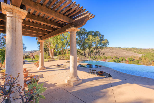 MAJOR PRICE REDUCTION ACT NOW! Stunning Mediterranean Estate - Where Style Meets Serenity. Welcome to your dream home--designed for those who appreciate exceptional design, unparalleled views, and a lifestyle of tranquility and elegance. Located in the exclusive, gated equestrian community of Lexington Hills in Santa Rosa Valley, this Mediterranean villa is perched just above Thousand Oaks, offering the perfect blend of privacy, prestige, and proximity to Los Angeles. Panoramic Views & Outdoor BlissSet on 5.43 acres of lush, manicured grounds, this property is a sanctuary of beauty and peace. Enjoy breathtaking vistas from every window, miles of private equestrian and biking trails, and an ideal microclimate that's nearly 10 degrees cooler than Hidden Hills. Ocean breezes flow through the hills, and scenic pastures, rolling vineyards, and mature fruit trees enhance the ambiance. The infinity-edge pool and spa, outdoor bar and BBQ area, and film-worthy pergola with firepit, meditation pond, and meandering stream create the ultimate indoor-outdoor living experience--perfect for entertaining or peaceful solitude.Sophisticated InteriorsSpanning 3,925 sq ft, the home features 5 bedrooms and 4 bathrooms, all thoughtfully designed with high ceilings, natural light, and mesmerizing views.The primary suite is a romantic retreat with a gas fireplace, spa-like bathroom with jetted tub, double vanities, hammered copper sinks, walk-in shower, enclosed water closet, and a large custom walk-in closet. A Chef's Dream KitchenThe heart of the home is the gourmet kitchen, outfitted with a large granite island, built-in butcher block, copper sink, Thermador 6-burner range with double ovens, warming drawer, microwave, and a temperature-controlled wine cabinet. The open-concept design flows seamlessly into the spacious family room and alfresco dining area, ensuring you're always connected with nature and loved ones. Luxury, Convenience & Lifestyle3-car attached garage and circular driveway with ample guest parkingJust 20 minutes to Camarillo private airport, 45 minutes to Malibu or Montecito, and 50 minutes to Beverly HillsMinutes from top-rated schools, fine dining, shopping, and entertainment in Westlake. Ideal for horse lovers, with ample space for stables, riding, and agricultural pursuits Soil ready for a vineyard or thriving vegetable garden Surrounded by celebrity-owned estates in a peaceful, gated enclave. this home offers a lifestyle few can imagine--
