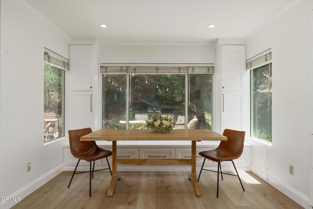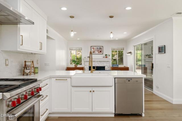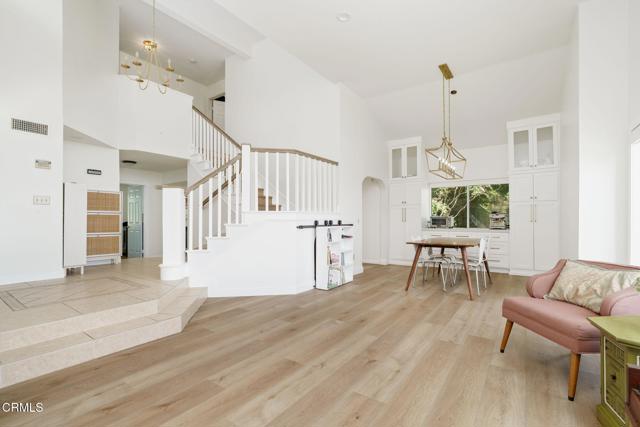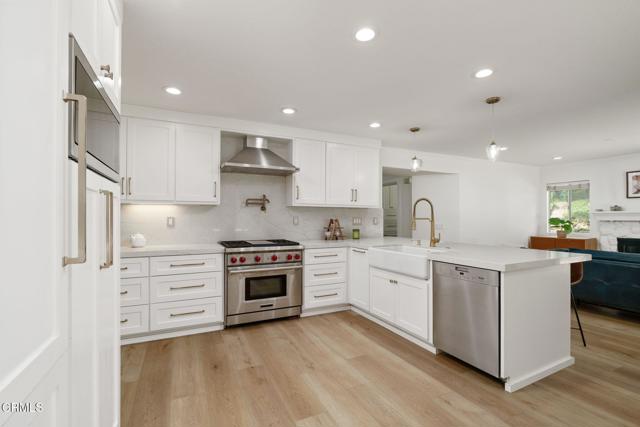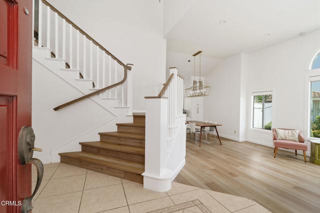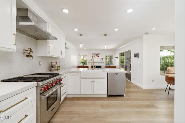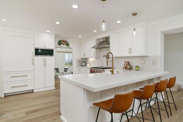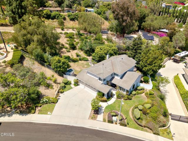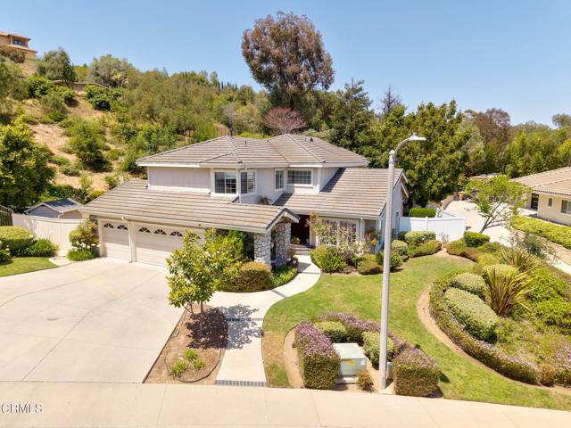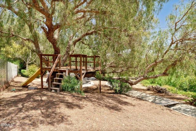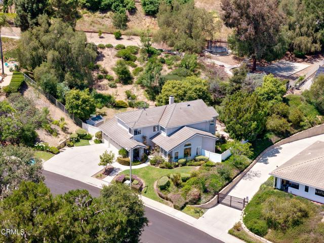 Discover this beautifully upgraded 5-bedroom, 3-bathroom home nestled on nearly 3/4 of an acre in a private Camarillo enclave. With breathtaking valley and mountain views from multiple rooms and the backyard, this home offers both serenity and style.The remodeled kitchen is a chef's dream, featuring custom quartz countertops and backsplash, high-end Sub-Zero refrigerator, Wolf stove, white shaker cabinetry, and a cozy eat-in nook with built-in bench seating. A separate dining area includes a custom coffee bar with extra storage, ideal for entertaining.Enjoy seamless indoor-outdoor living with a spacious 32,633 yard that boasts a built-in BBQ, concrete patio, chicken coop, and a meandering path leading to a custom treehouse and sport court with basketball hoop -- all surrounded by lush landscaping and unmatched privacy.Inside, the home is filled with thoughtful upgrades, including McMillan Pendle Oak XL waterproof flooring downstairs and rich wood flooring upstairs. The living spaces are accented with large windows that flood the home with natural light and capture panoramic views. The den off the kitchen features a cozy fireplace with gas starter.Storage abounds, with custom built-ins throughout, including clever spaces perfectly sized for everything from spices to paper towels, as well as under-stair storage and professionally organized closets in each bedroom.The floor plan offers flexibility with one bedroom and a full bath on the main level -- ideal for guests or multi-generational living. Upstairs, you'll find four more spacious bedrooms, including a primary suite with dual-sink vanities and ample closet space.This one-of-a-kind property combines luxury, functionality, and outdoor fun -- a rare find in a coveted Camarillo location.