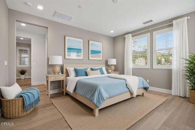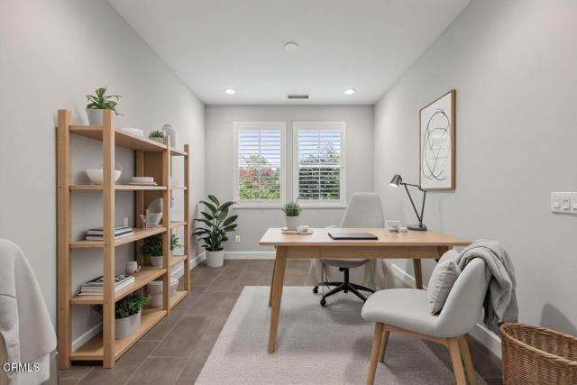 Beautiful, turn-key home in Camarillo's desirable 'The Grove' 55+ community. Meticulously maintained with high-quality finishes throughout, every bedroom and bath reflects pride of ownership. Thoughtfully designed for comfort and effortless living, this light-filled residence features an open floor plan with two spacious bedrooms--each with an en-suite bath--on the main level. Upstairs, a private third bedroom and full bath create the perfect retreat for guests or multigenerational living. An additional downstairs office/den offers flexible use and could serve as a fourth bedroom if needed.The gourmet kitchen shines with ceiling-height cabinetry, quartz countertops, a striking Italian tile backsplash, top-tier stainless steel appliances, and abundant storage. A large island anchors the space and flows seamlessly into the family room for easy entertaining. Host memorable gatherings in the open-concept Great Room, then step into the private California Room/lanai to enjoy the soothing fountain and lush, low-maintenance landscaping--beauty and privacy all in one.Start living your best years at this active adult resort community designed and loved with the intention of being a forever home. The Grove's resort-style amenities encourage an active lifestyle: a state-of-the-art fitness center, pickleball, ping-pong, bocce ball, putting green, large walk-in pool with cabanas, spa, BBQ areas, outdoor fireplaces, two dog parks, and even The Grove Library. Discover the perfect blend of luxury, convenience, and community--don't miss this exceptional home.