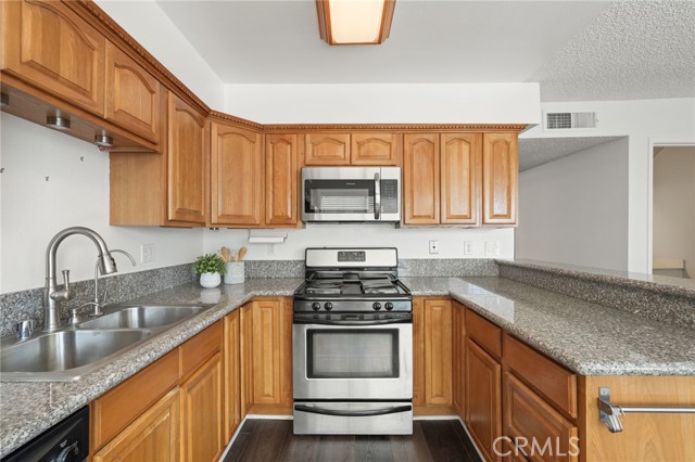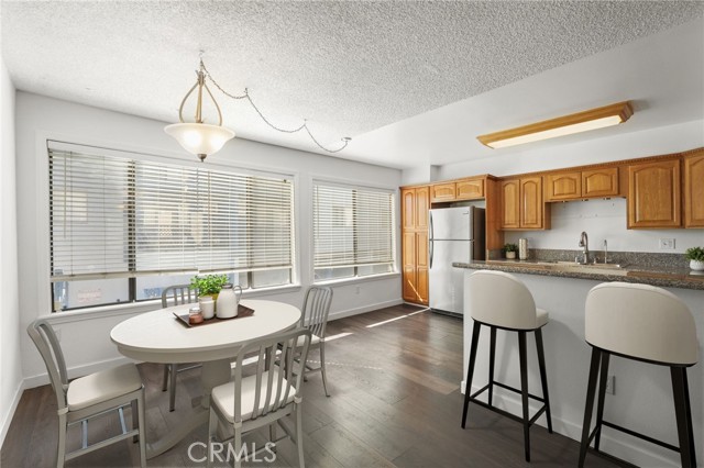 Welcome to this spacious two-story condo in the heart of Woodland Hills. With a practical layout and new vinyl flooring throughout, this home offers comfort, functionality, and room to make it your own. The main level features two separate dining areas, a generously sized kitchen with ample counter space and modern appliances, and a cozy living room with a fireplace — perfect for relaxing evenings at home. Just off the living area, sliding glass doors open to a private enclosed patio, ideal for enjoying your morning coffee, entertaining guests, or getting some fresh air. Upstairs, you’ll find two well-sized bedrooms, each with its own walk-in closet. One bedroom includes an ensuite bathroom, offering privacy and convenience. The laundry area is tucked into a hallway closet with hookups for a side-by-side washer and dryer. Additional highlights include central air and heat, and two assigned parking spots in a gated garage. The community features a pool, spa, and landscaped courtyards, all within a secure and well-maintained complex. Conveniently located near Warner Center, Westfield Topanga, The Village, restaurants, cafes, and with easy access to the 101 and 118 freeways — this condo offers space, comfort, and a great Woodland Hills location.