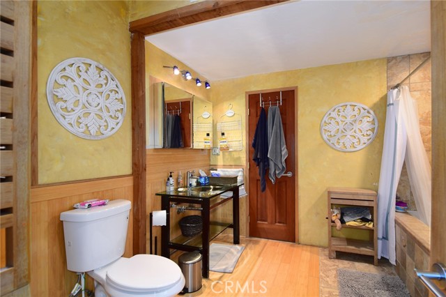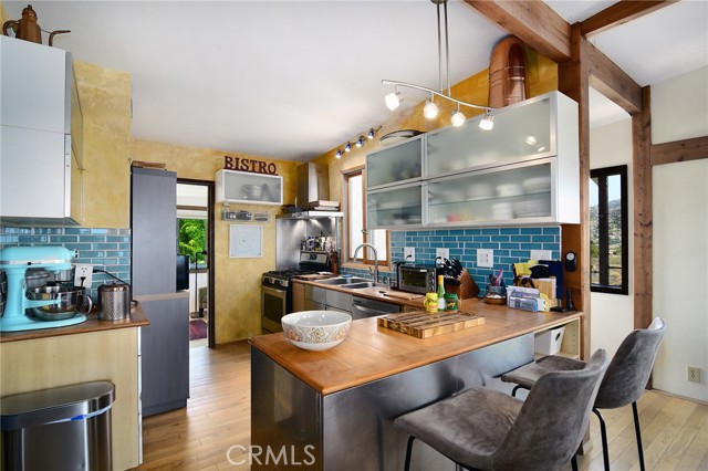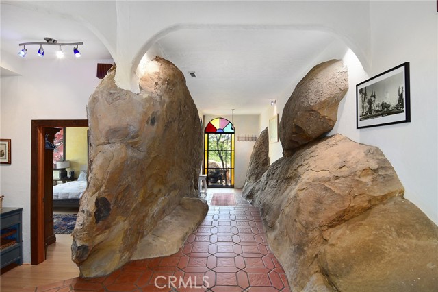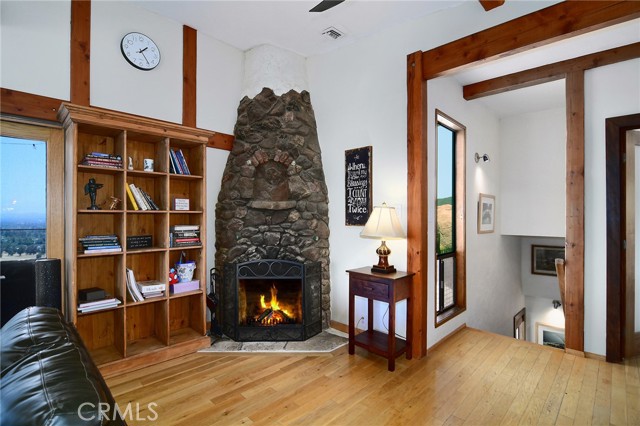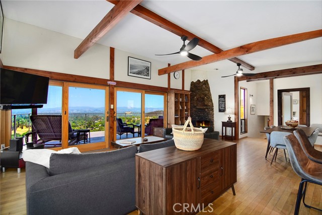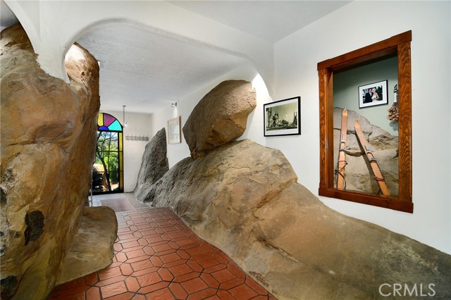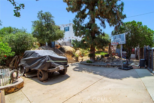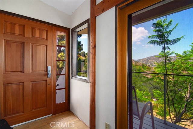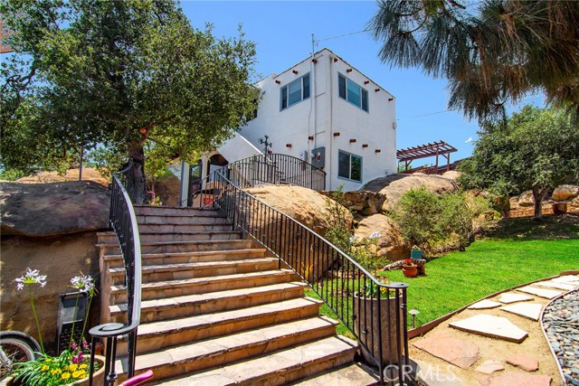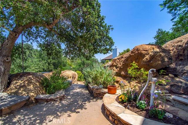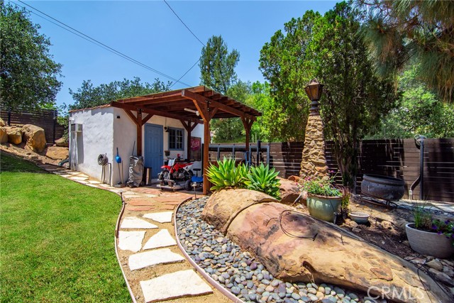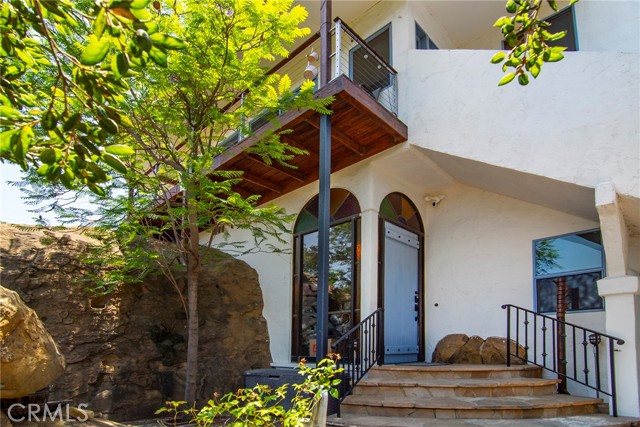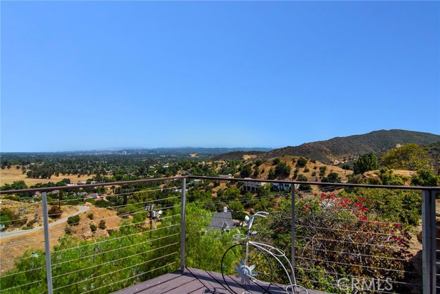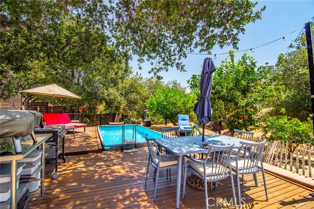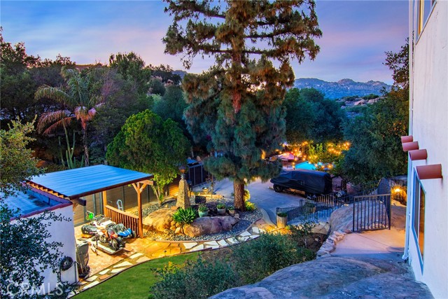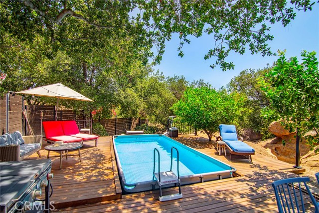 Hollywood Hills charm meets tranquil canyon living in West Hills. This one-of-a-kind Spanish adobe home is perched atop a sandstone ridge, offering unobstructed 360-degree views of the entire San Fernando Valley. Inside, you’ll find 3 bedrooms and 3 full baths across an open-concept floor plan featuring vaulted ceilings with exposed wood beams, creating a warm and airy ambiance. Enjoy seamless indoor-outdoor living with expansive sliding glass doors that open to a wraparound deck, sun deck, and a stylishly integrated above-ground pool with custom wood decking—perfect for relaxing, entertaining, or cooling off beneath the trees. The charming yard and sitting areas offer peaceful spaces to unwind while soaking in canyon and valley views. Modern upgrades include solar panels, a 200-amp electrical panel, landscape lighting, and a dedicated electrical panel by the pool. The property is fully fenced with dense Mangaris wood, and includes two sheds for extra storage, a one-car detached garage with carport, and ample parking. Smart home features include five Ring security cameras, a remote-controlled thermostat, and a WiFi-enabled deadbolt at the front gate, all easily managed from anywhere. Set at the end of a quiet, no-through street, this home offers ultimate privacy, European character, and direct access to incredible hiking trails. Other highlights include a mesh Wi-Fi system indoors and out, majestic oak trees, and the convenience of a main sewer connection (no septic). This rare architectural retreat seamlessly blends character, nature, and modern amenities.