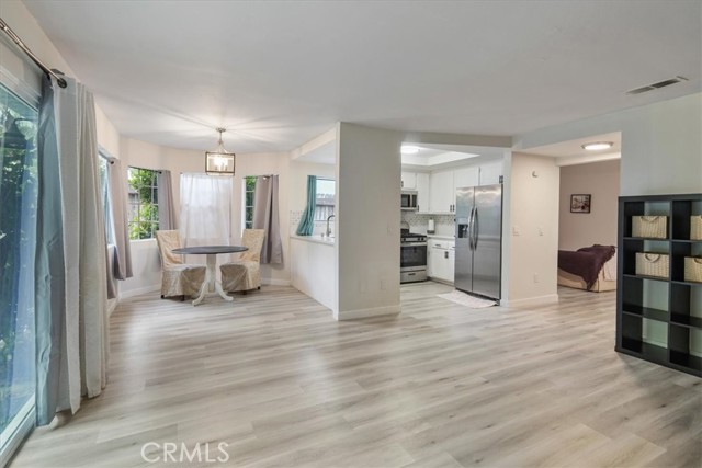 19832 Pandy Court is located on a Cul-de-Sac in Rainbow Glen in the American Beauty Classics! This modern home offers the perfect blend of style and functionality. As you enter, you will notice the laminate flooring and tall ceilings creating a bright and airy atmosphere. The living room offers a cozy fireplace and the formal dining room provides plenty of space for entertaining. The kitchen has been remodeled with quartz counters and stainless appliances and opens to the common room. Step outside the sliding glass door to enjoy the patio and backyard. All bedrooms are located upstairs, including a spacious primary suite with high ceilings and views of the backyard. Additional upgrades include newer HVAC and a full re-pipe. Community amenities include a pool, spa and sport court, all of which are a short distance. This home is a perfect fusion of modern amenities and serene living.