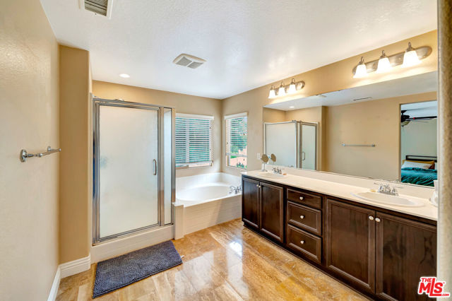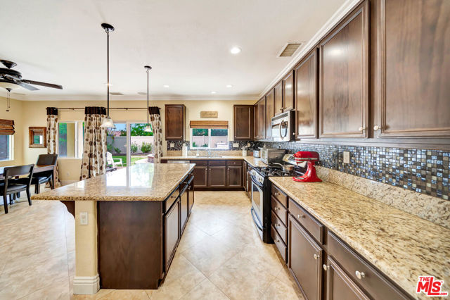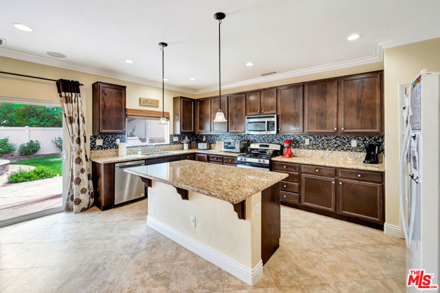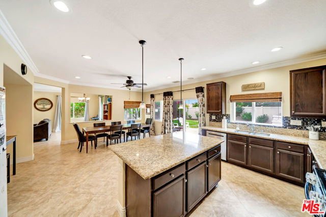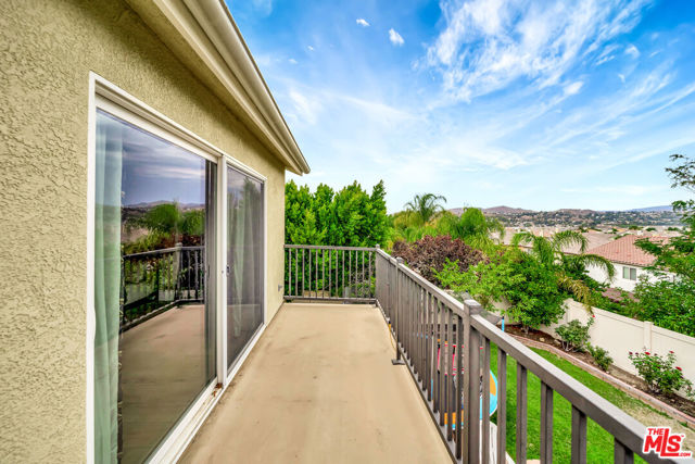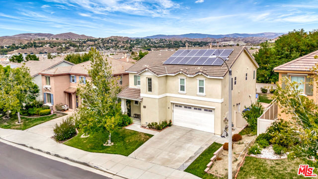 Absolutely charming, Fair Oaks Ranch residence, offering four bedrooms and three bathrooms, highlighting its LOW HOA and BEAUTIFUL BALCONY VIEWS, hits the market for the very first time and is now available. As you enter, the formal living room greets you with recessed lighting and tile flooring, cohesively flowing into the formal dining area featuring an abundance of natural light throughout. The spacious family room, opens to the kitchen, featuring a large beautiful island, granite counters, ample cabinet storage, and a walk-in pantry. On title, this property is shown as a three bedroom home but the office upstairs can easily be converted to a fourth bedroom by adding sliding closet doors. All bedrooms are well-sized and located upstairs. A very wide door entry leads you to the master bedroom featuring a foyer entry and a beautiful master bath that features a dual vanity, separate tub, walk-in shower, and huge walk-in closet. Additionally, the master bedroom has a wide balcony overlooking the beautiful community and mountain scenery. The backyard includes a covered patio and space to add a pool. This perfect four bedroom home also features FULLY PAID OFF SOLAR PANELS. The community offers an abundance of amenities such as a pool, water park, playground, community park, hiking/biking trails, sport courts, etc. The community has an elementary school serving TK-6th grade and is conveniently just minutes away from expanding shopping centers, restaurants, and the 14 freeway.