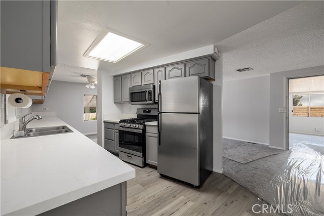 Welcome to 23463 Big Tee Drive in the Canyon Lake Fairway Estates. This charming 2 bedroom, 2 bathroom home offers comfort, convenience, and recent upgrades throughout. You’ll love the long driveway and covered carport, providing ample parking space. Step inside to find fresh interior paint, brand new flooring, and a stylishly updated kitchen featuring quartz countertops and a new stove. The home also features a newer roof and a newer patio cover, adding peace of mind and outdoor enjoyment. No age restrictions, You own the land, no space rent, just the HOA dues. Canyon Lake Living offers a one-of-a-kind private 400-acre lake. Residents enjoy year-round fishing, waterskiing, wakeboarding, swimming, and breathtaking views. In this golf cart-friendly community, there are 16 parks, most with beaches and playsets, basketball, baseball, tennis, pickleball, equestrian center, 18-hole golf course, pools, dog park, BMX pump track, slalom course, ski jump, restaurants, community events, and so much more!