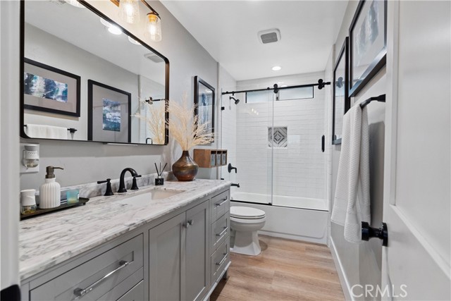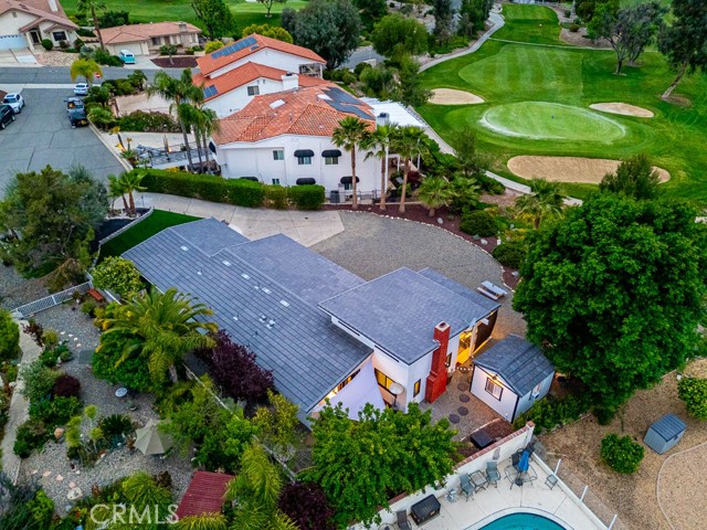 SINGLE story ranch home on the GOLF course with amazing sunset VIEWS almost every single night and a huge, flat POOL SIZED lot with RV potential! Welcome to this exceptionally remodeled 3 bed, 2 bath home featuring a one of a kind detached office/she-shed. This lovely home sits on a sprawling 1/3 of an acre of usable land and is nestled right on the green of the 4th hole of the Canyon Lake Golf Course. With 1,448 square feet of thoughtfully designed living space, this home blends comfort, style and functionality in a prime location. Step inside to an open floor plan with vaulted ceilings and an abundance of natural light through all new windows and doors. The great room flows seamlessly into a stunning modern kitchen, where you'll find a spacious quartz island with counter seating, new beautiful backsplash, custom soft-close cabinetry, stainless steel appliances, a farmhouse sink, updated lighting, wine fridge and a microwave tucked into the island— perfect for entertaining or throwing together some amazing meals with the family. Relax in the cozy living area featuring an elegant fireplace with a custom mantle, vaulted ceilings, lots of windows with great lighting and two huge sliders that look out over your massive backyard, the greenery of the golf course and the mountains beyond. This home showcases fully remodeled bathrooms including a spa-like master bath with a glass-enclosed shower, custom tile work, marble vanity, updated fixtures, new lighting and a sleek barn door for privacy. Additional upgrades include new windows, new doors, new roof, new casing, new trim and fresh paint. The detached versatile shed is equipped with updated floors, lighting shelving, an AC unit and even has an upstairs bunk — ideal for an office, workshop, meditation room or extra storage. This home offers ample parking opportunities and definitely RV potential. Canyon Lake is a distinctive, private gated community designed for golf cart use, featuring a beautiful lake with a ski course, a golf course, extensive hiking, biking, and horse trails, numerous parks and beaches, an elegant community lodge with a restaurant, a remarkable private pool area, sports courts, and much more! Don’t miss your chance to own a slice of paradise in the highly desirable community of Canyon Lake!