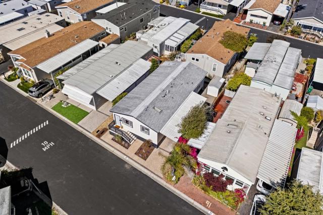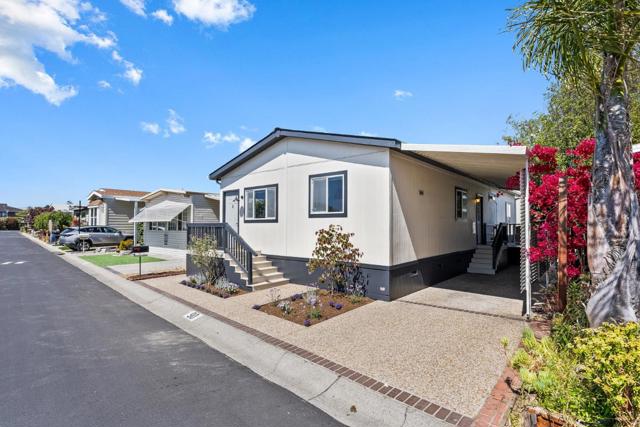 Back on Market. NO VA loans - All cash or loan with Bay Federal or other lenders. Easy Peasy except for VA. New Buyer Now! A cliche' is a phrase that has become overused to the point of losing its original meaning. But one cliche' that never loses its meaning is one often used in real estate. Location, location, location. If you are looking for a home that checks all the boxes, your search is over. Located in the heart of the town of Capitola, close to shopping, one of the nicest beaches in the state, restaurants & more, #90 offers all of these & more. Situated in a meticulously maintained 55+ park, this 2 bedroom, 2 bath manufactured home features plenty of natural light from the many windows and the skylight in the open concept kitchen, dining & living area. Down the carpeted hallway is a laundry room with lots of storage, 2 large bedrooms, the primary with an en suite, and a guest bathroom with a tub & shower enclosure. Flooring includes carpet in the living room, 2 bedrooms, & sparkling vinyl in the kitchen & bathrooms. Off street parking for 2 cars highlight the exterior of the home with fresh flower beds, a garden shed & a mechanical lift for easy access to the side door into the laundry room. The home has it all. Come see it today. Not Staged. Available now!