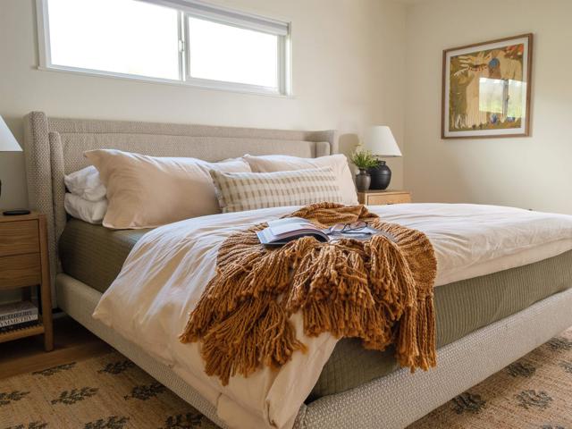 This fully renovated 2024 coastal retreat delivers breathtaking panoramic ocean views from the kitchen, living room, and expansive west-facing patio in Cardiff’s most desirable neighborhood, just a five-minute walk to Waverly, Seaside Market, the Coastal Rail Trail, and minutes from world-class surf at Swami’s and Cardiff Beach. Designed for effortless luxury, the interior features European white oak flooring, Carrara marble counters in the kitchen and baths, and custom cabinetry throughout. The chef’s kitchen centers around a six-foot Carrara marble island with a custom hood, appliance bar, Fisher & Paykel and Bosch panel-ready appliances, and polished nickel fixtures by Rohl including a pot filler. A ten-foot sliding glass wall opens to the ocean-facing patio and outdoor dining area, blurring the line between indoor and outdoor living. Bathrooms showcase a curated mix of Zellige, Bedrosian, and Concrete Collective tile with unlacquered brass fixtures, while the detached bathroom includes a hand-carved Calacatta Viola marble sink as a standout design feature. Offered fully furnished, this home is a rare opportunity to live in refined coastal elegance just steps from everything Cardiff has to offer.