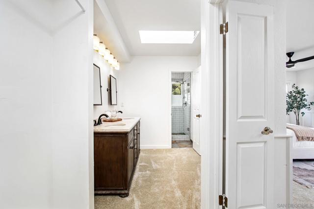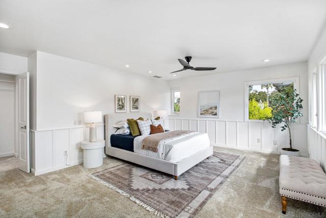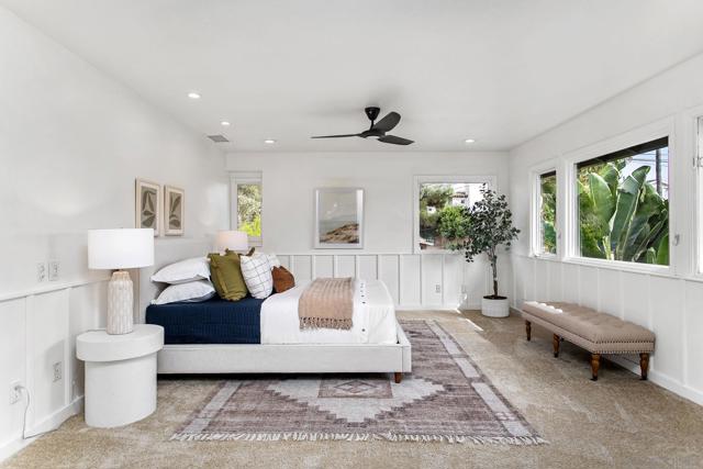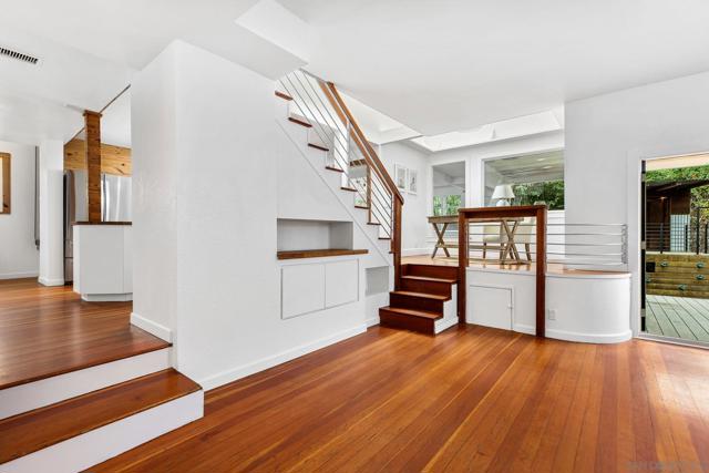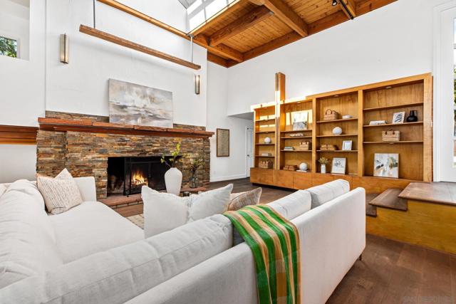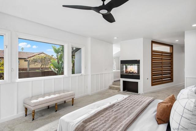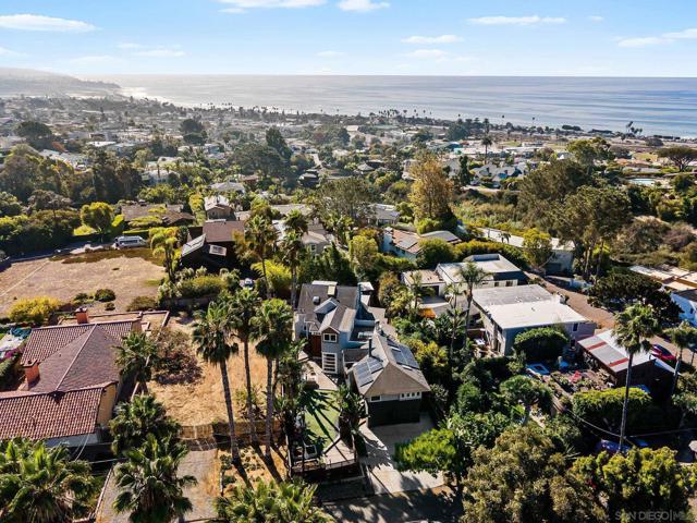 Rare opportunity to own a beautifully crafted custom home in Cardiff’s sought-after Composer District. Designed and built by Tom McCabe, this 3-story, 4-bedroom, 3.5-bath residence offers over 3,500 sq. ft. of beautiful living space. The welcoming living room at entry-level has vaulted ceilings, cozy fireplace, and opens to a palm-tree lined yard via floor-to-ceiling double doors. Great for entertaining! Enjoy a newly built lap pool with a separate relaxing hot tub. Two-car garage with extra storage has direct access to the home. Light-filled kitchen located on the second level has updated appliances, wine refrigerator, and a private dining room. Adjacent bonus living area with fireplace, laundry room, and a spacious primary retreat complete with a jacuzzi tub and fireplace. Three more bedrooms and two bathrooms located on the top floor, including an en-suite with a private deck and peek-a-boo ocean views. This home also includes owned solar panels, ensuring energy efficiency and savings. Situated just steps away from San Elijo State Beach and Rossini Canyon, near top-rated local schools and premier shopping, this residence combines luxury, location, and lifestyle.