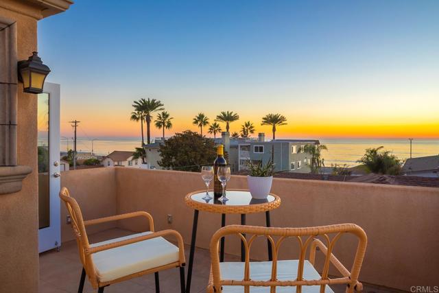 Located west of I-5, less than one block to the sand! Enjoy extraordinary panoramic ocean views and incomparable beach proximity. Custom built home with high-quality materials. Current owner spent close to $200,000 on improvements and upgrades! Central air conditioning, kitchen remodel (2022), new flooring throughout most of the home. Rare 3-car attached garage with storage, incredible rooftop deck, main level bedroom and bath, two fireplaces. Front yard is gated, rear yard has a private spa. NO HOA and no Mello-Roos. This is a DETACHED HOME, NO COMMON WALLS. Move-in ready condition and priced competitively (check the comps and price per square foot!). Award-winning Carlsbad schools! Walk to The Village.