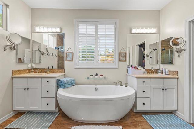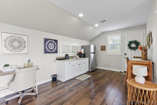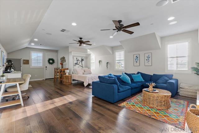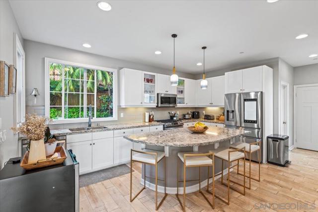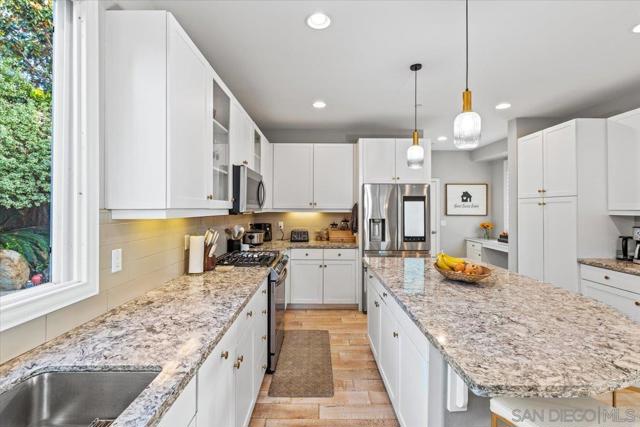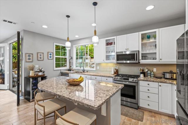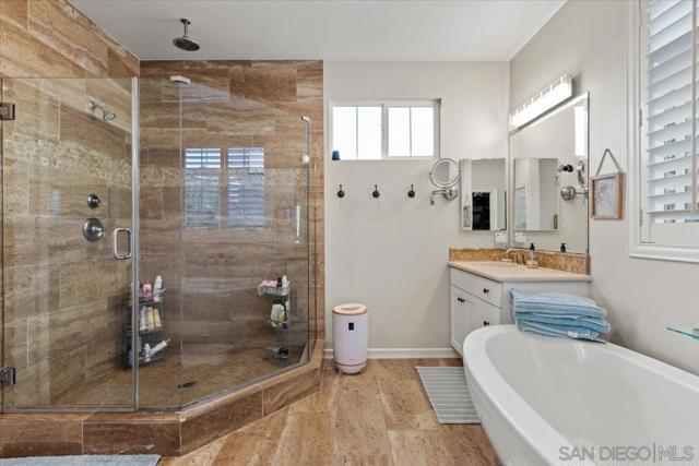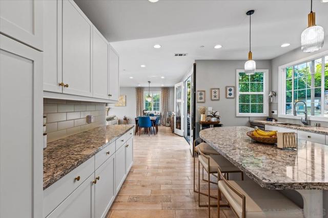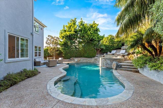 Discover this upscale Craftsman style home nestled in the heart of Olde Carlsbad, perched on an elevated, private cul-de-sac lot with peak ocean views. Located within the award winning Carlsbad Unified School District, just 2 miles from the beach and the vibrant Carlsbad Village, this meticulously maintained residence offers the perfect blend of coastal elegance, comfort, and convenience. Boasting generous living spaces and thoughtful upgrades throughout, the home is truly move-in ready. Enjoy the light and airy open concept design, featuring a spacious great room with a custom stone fireplace. Large windows bathe the home in natural light while offering glimpses of breathtaking Pacific sunsets and refreshing ocean breezes. A rare added bonus is the attached private-entry granny flat above the 3-car garage is complete with a kitchenette, dinette, full bath, living and office area. This versatile space is ideal for multigenerational living, a home office, or as a consistent rental income opportunity. Step outside to your own private backyard paradise which is an entertainer’s dream and tranquil retreat in one. Unwind in the sparkling pool and spa with LED lighting, solar and gas heating, surrounded by lush tropical landscaping, a serene waterfall and stream, elevated lounge deck with fireplace, and integrated ambient lighting including charming overhead string lights. Whether you’re hosting gatherings in the expansive chef’s kitchen or soaking in the peaceful atmosphere of your garden sanctuary, this exceptional Olde Carlsbad gem offers the ultimate in Souther All measurements are approximate. Buyer's and Buyer's Broker/Agent should verify measurements and complete thorough inspections and investigations prior to Close of Escrow to satisfy themselves with the current condition of the property. Buyer(s) to verify and approve all data, reports, records, inspections, permits, MLS, HOA, if applicable and all information pertaining to the property prior to removal of contingencies. All contracts/offers are subject to seller approval and any offers or counteroffers by seller are not binding unless the entire agreement is ratified by all parties.