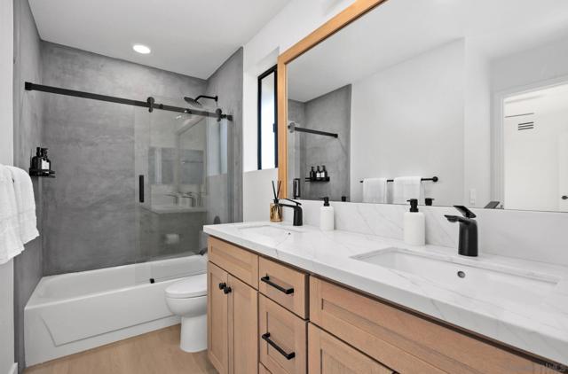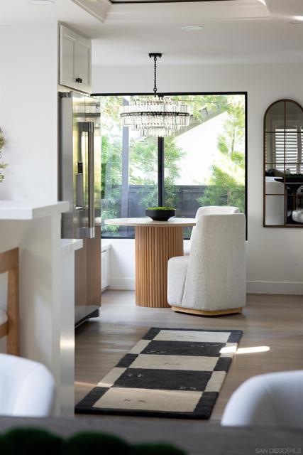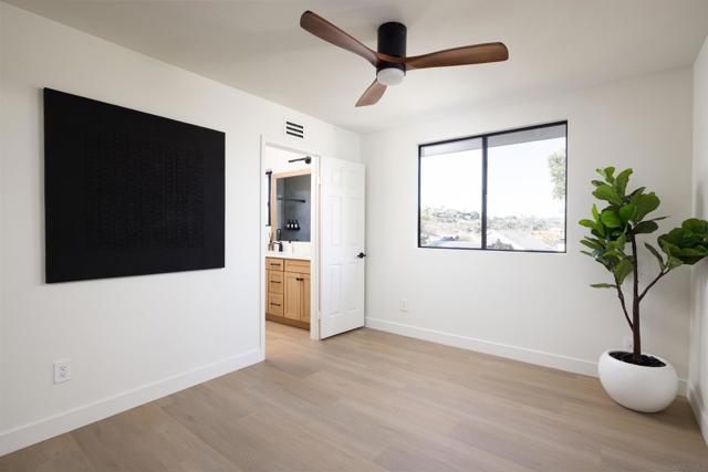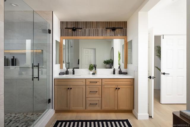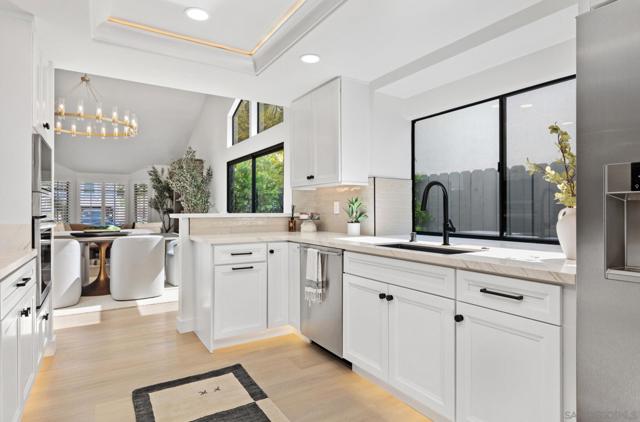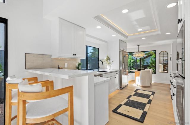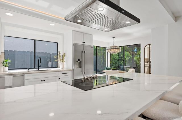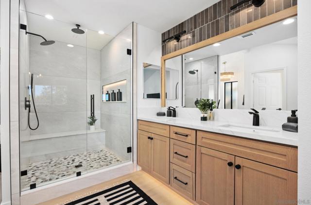 A brand-new, full-scale remodel elevates this La Costa residence into a showcase of craftsmanship, comfort, and contemporary design. Every detail—from wide-plank flooring and custom millwork to ambient lighting and curated fixtures—reflects a cohesive, high-quality renovation that feels both modern and timeless. The main level offers connected yet distinct living, dining, and family spaces beneath vaulted ceilings and multiple fireplaces, creating warmth and natural balance throughout. The kitchen stands as the centerpiece, featuring premium cabinetry, quartz countertops, a full-height backsplash, and stainless steel appliances anchored by a large peninsula for casual dining. A glass-enclosed home office opens to the backyard, while a guest bath completes the level. Upstairs, the primary suite provides the comfort of a new build with a spacious bedroom, custom walk-in closet, and spa-inspired bathroom featuring dual vanities, a rainfall shower, and a freestanding soaking tub. Three additional bedrooms and two modern baths echo the same elevated finishes, complemented by a laundry room and built-in storage. New landscaping surrounds the home, and sliding doors open to a pergola-shaded patio with a fire feature, privacy planting, and low-maintenance hardscape. Additional upgrades include LED lighting, smart appliances, thermostats, and integrated smart TVs. Designer furnishings by Restoration Hardware and CB2 are available separately. Less than a quarter mile to La Costa Canyon Park and minutes from shopping, dining, and Omni La Costa Resort & Spa. A brand-new, full-scale remodel elevates this La Costa residence into a home defined by craftsmanship, comfort, and contemporary design. Every element, from wide-plank flooring to custom millwork, ambient lighting, and curated fixtures, reflects a cohesive, high-quality renovation that feels both modern and enduring. The main level features connected yet distinct living, dining, and family spaces beneath vaulted ceilings and multiple fireplaces, offering natural light and balance throughout. The kitchen is a centerpiece of function and design, finished with premium cabinetry, quartz countertops, a full-height backsplash, and stainless-steel appliances anchored by a large peninsula for casual dining. A glass-enclosed home office opens to the backyard, while a guest bath completes the level. Upstairs, the primary suite delivers the comfort and privacy of a new build: a spacious bedroom, custom walk-in closet, and a spa-inspired bathroom with dual vanities, a rainfall shower, and a freestanding soaking tub. Three additional bedrooms and two modern bathrooms echo the same elevated finishes with stone surfaces, matte-black fixtures, and designer tile. A dedicated laundry room and built-in hallway storage add convenience and efficiency. All new landscaping surrounds the home, and sliding doors extend the living space outdoors to a pergola-shaded patio with a fire feature, privacy planting, and low-maintenance hardscape, ideal for coastal indoor/outdoor living. Notable upgrades include LED lighting, smart appliances and thermostats, and integrated smart TVs. Designer furnishings by Restoration Hardware and CB2 are available separately, offering a turnkey option for buyers seeking a complete move-in ready experience. Less than a quarter mile to La Costa Canyon Park and minutes to shopping, dining, and Omni La Costa Resort & Spa, the home combines convenience with a quiet neighborhood setting. Shown by appointment only. Furnishings negotiable.