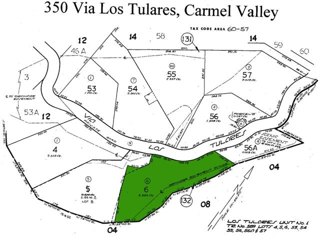 This sun kissed property is situated in desirable Los Tulares, an established upscale neighborhood just east of Carmel Valley village, in the heart of wine country. This breathtaking 2.58 acre parcel, has sweeping panoramic vistas to the south and east of Stone Pine, Carmel Valley and the stunning Santa Lucia Mountains. The lot is set down from the street to take full advantage of the expansive, unobstructed view setting. The property has a private well that has not be been used or tested in a long time, there are also some lovely Oaks, as well as an old tennis court. Convenient to shops, restaurants and amenities of Carmel Valley village, and approximately 20 minutes to Carmel.