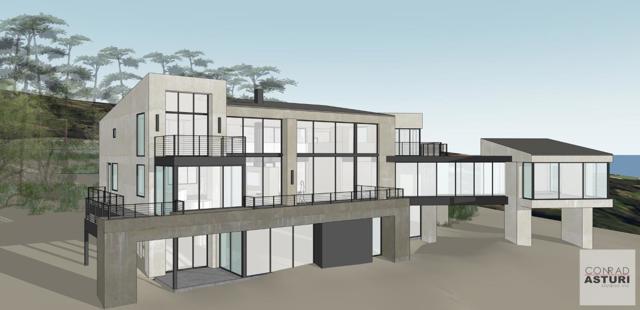 Perched above one of the most stunning coastlines on the Pacific, in the highly sought-after Carmel Highlands, this 2.12-acre parcel offers the rare opportunity to create your own modern, coastal retreat. With significant preparatory and infrastructure work finished, and plans currently in the design approval process, this stunning 5,000+ sq. ft. residence is well on its way to realization. The home has been designed to frame sweeping ocean views through floor-to-ceiling glass and vaulted ceilings, with a thoughtful layout that includes 3 bedroom suites, 3.5 baths, an elevator, and a 3-car garage. The main-level primary suite captures dramatic ocean vistas with a spa-like bath, while the upper-level suite features a bar and private terrace, perfect for morning coffee or relaxing at sunset. Expansive living and sitting rooms share a double-sided fireplace, and multiple decks invite seamless indoor-outdoor living. With a gourmet kitchen, pantry, and private well, this property offers an exceptional opportunity to build an architecturally striking home surrounded by the natural beauty of the Carmel Highlands.
