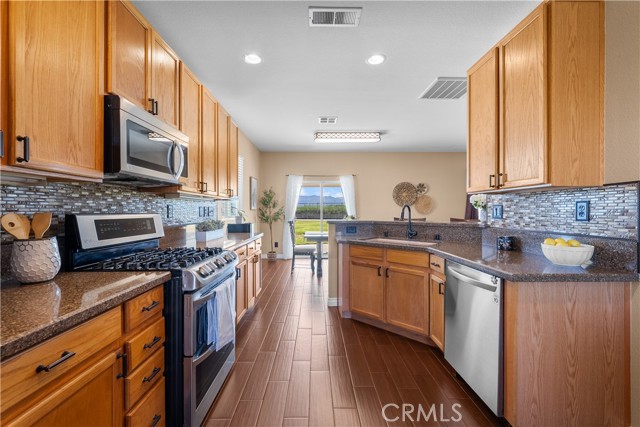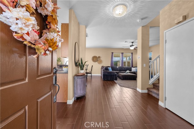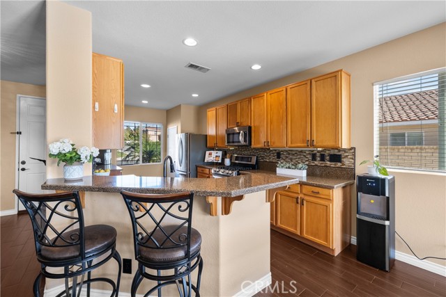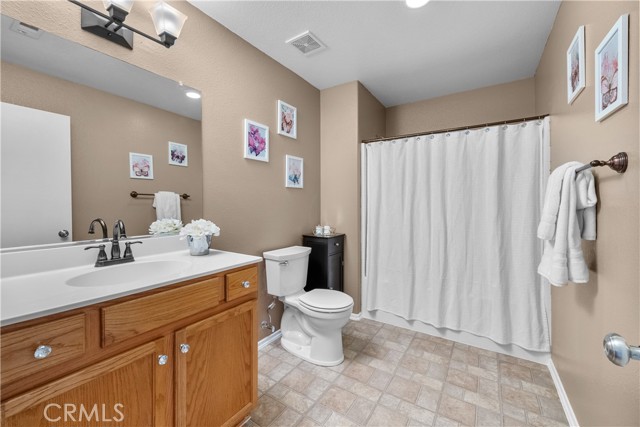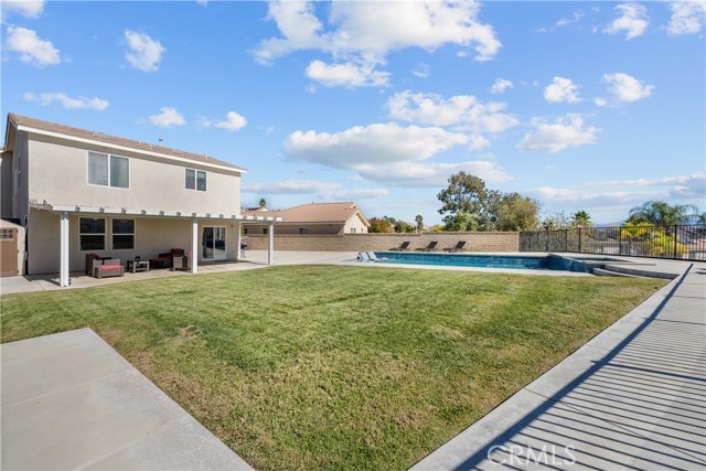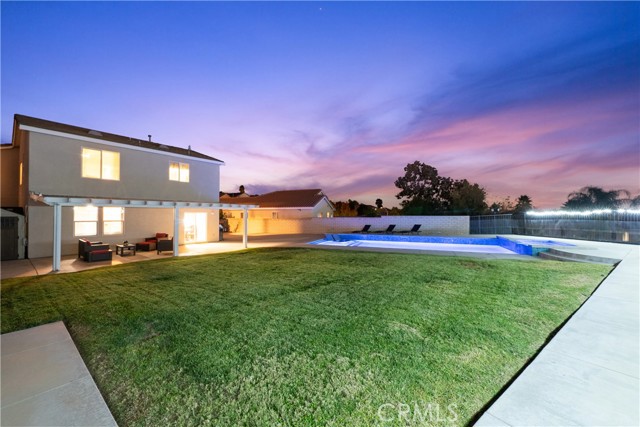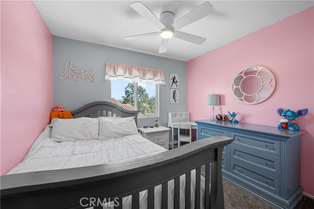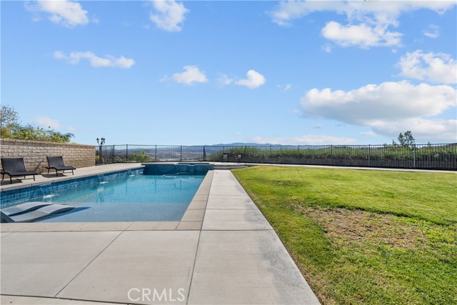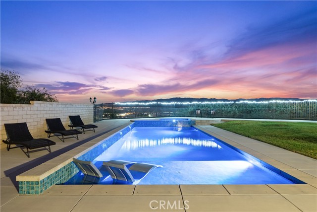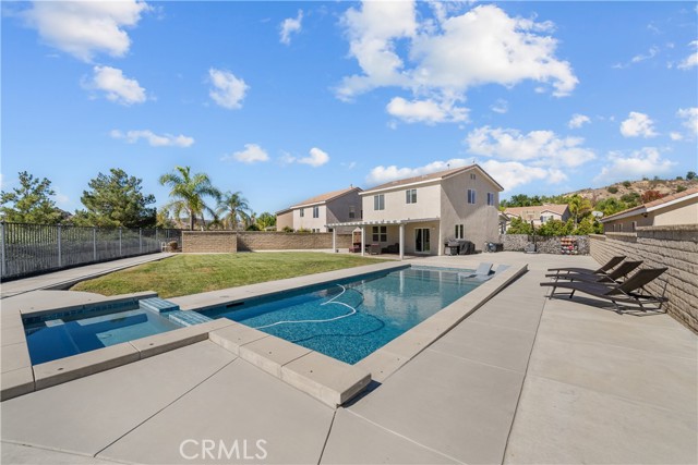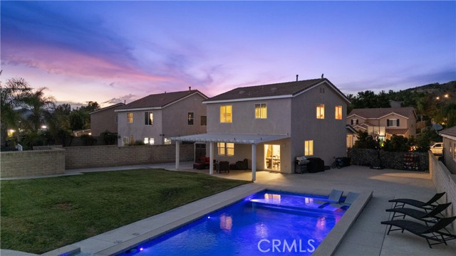Welcome to your dream home in the desirable Hasley Hills community! This warm 2,247-square-foot residence on a 9,321-square-foot lot located in a cul-de-sac beautifully blends comfort and style. With 4 bedrooms and 2.5 bathrooms, the open-concept layout is perfect for gatherings and everyday living. A large front yard and covered porch create inviting curb appeal. The updated kitchen features granite countertops, a stylish backsplash, stainless steel appliances, and a breakfast bar ideal for morning coffee or casual chats. Tile floors extend through the kitchen and dining room, while plush carpeting in the family room adds warmth, flowing into a cozy family room filled with natural light. Downstairs, a freshly painted powder room adds charm. The separate laundry room includes updated cabinetry, a backsplash, added shelving, and extra counter space for convenience. Upstairs, the primary suite offers an ensuite bath with dual sinks and an updated walk-in closet. Two additional spacious bedrooms feature ceiling fans and mirrored closets, and a versatile fourth bedroom, currently utilized as a home office and theater room, includes a built-in desk, cabinets, shelving, and ample storage. Ceiling fans in all bedrooms and a full bathroom ensure comfort throughout. The backyard is a true showstopper! The expansive lot boasts a stunning pool with a Baja shelf and spa, creating a resort-like oasis perfect for relaxing or entertaining. A covered patio provides the ideal spot to unwind while enjoying breathtaking valley views. The generous grass area invites play and recreation, while large concrete sections offer space for sports or outdoor gatherings, making this backyard an unforgettable retreat. Modern upgrades, including a new AC unit, whole-house water filtration system, and updated water heater, ensure efficiency. The two-car garage offers ample storage. Located in Hasley Hills with no Mello-Roos and low HOA fees, this home is just minutes from the 5 and 126 freeways, Castaic Lake, and Six Flags Magic Mountain. Nearby grocery stores, restaurants, and parks add convenience. This is the perfect place to create lasting memories. Schedule your private tour today!