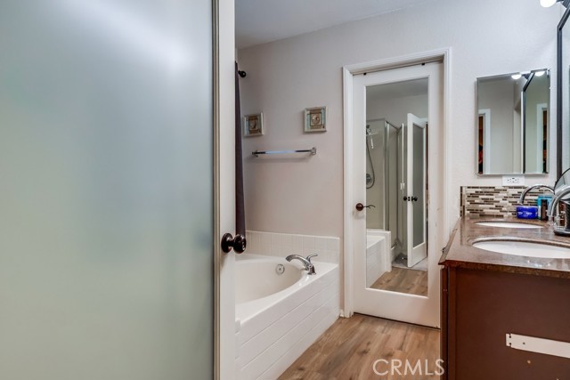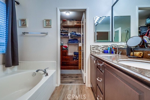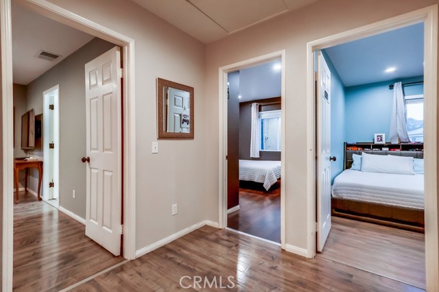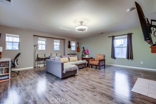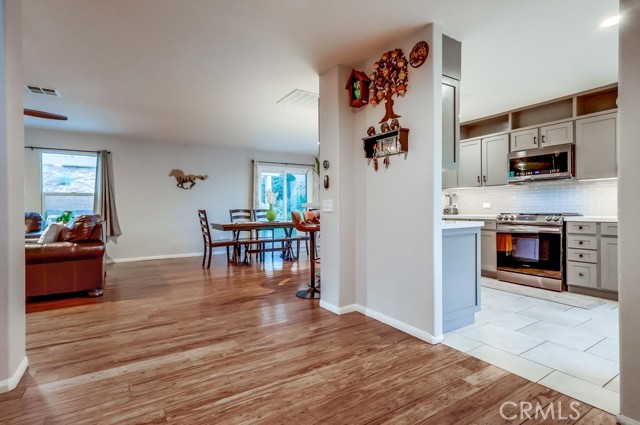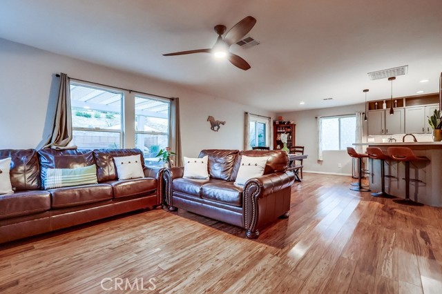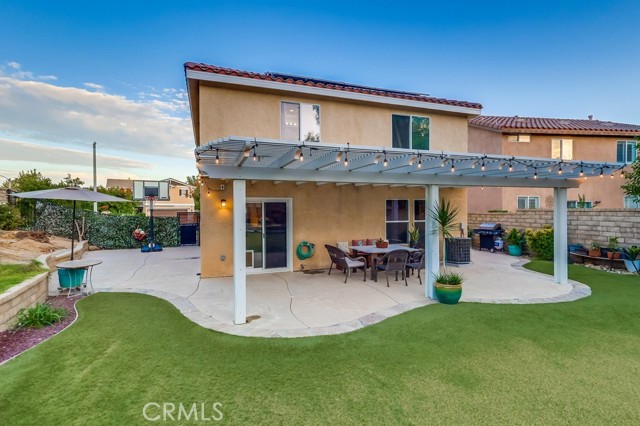 Welcome to the sought-after Cambridge Collection in Hasley Hills! This beautiful home features 3 bedrooms plus a spacious loft with a closet — perfect as a 4th bedroom, den, family room, entertainment area, or versatile bonus space. The open-concept layout includes a light and bright kitchen with a breakfast bar that flows seamlessly into the dining and family rooms, highlighted by elegant bamboo wood flooring. Upstairs, you’ll find Pergo-style wood flooring throughout. The primary suite offers a relaxing retreat with a separate soaking tub and shower, dual sinks, and a generous walk-in closet. Situated on a desirable corner lot with only one neighboring home, the property also boasts fully paid solar panels for energy efficiency. Enjoy a private backyard with low-maintenance synthetic grass, a spacious patio, and a custom aluminum pergola—perfect for outdoor entertaining. Conveniently located near schools, parks, shopping, and with easy freeway access. Low HOA fees and no Mello-Roos make this an outstanding opportunity!