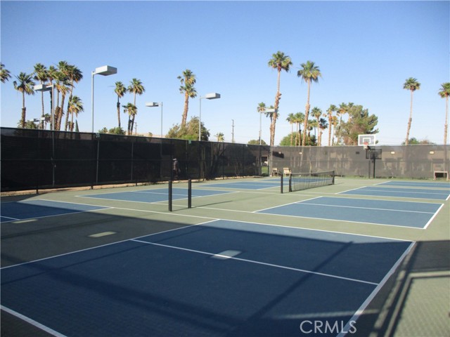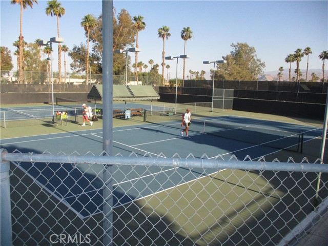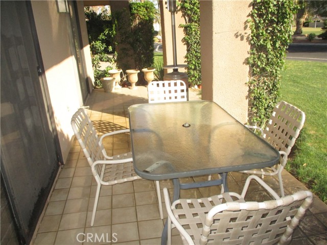NOW REDUCED 40K!!!!!Fabulous upgrades on this unit over the years. You'll feel like you at a hotel! Beautiful Travertine flooring throughout, beautiful kitchen cabinets, stainless steel appliances, located on the "best" street in the Desert Princess! The "primary" bedroom has high ceilings and wonderful crown molding. The primary bath has lots of closet space, and a locked closet for the owner's use only. It also has double sinks, and an unbelievable Travertine shower with a wand and a rain shower head. Outside, you can enjoy the golfers driving by as you sip your morning coffee! The wellness center is just down the street, with all the machines you need to stay fit! There is also, Raquetball and even Massages that can be booked. Tennis and pickle ball courts are right outside! The golf registration is another minute down the road. The complex has 32 pools and spas. The golf course is a resort style with a 27 hole gorgeous golf course. The golf annex has a great restaurant, bar, and snack shop next to the starters golf shop. Desert Princess Hotel offers a great restaurant and a few bars. Just across the street is Starbucks, IHOP, and a huge Stater Brothers!. The just a short drive to downtown Palm Springs and 10 minutes to Rancho Mirage, Agua Caliente Casino, and Costco and Indian Wells a few minutes farther. For the price, this is the nicest 3 bedroom, 2 bath on the market. Remember, 55 years or older community
