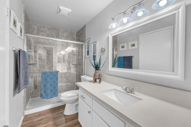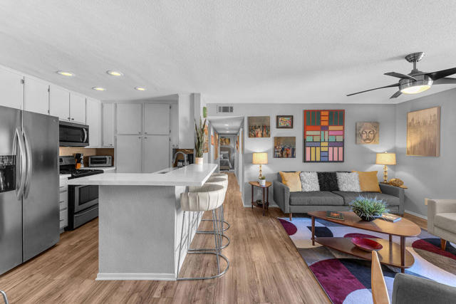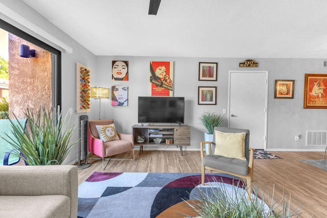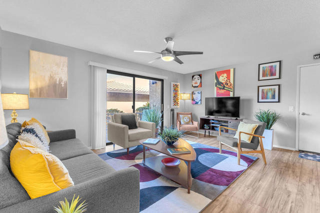 Welcome to Cathedral Springs, a gated community offering resort-style living in the heart of Cathedral City! This beautifully updated 2-bedroom, 2-bath condo offers 1,160 sq. ft. and features modern flooring, stylishly upgraded bathrooms, and refreshed countertops throughout. Enjoy a spacious layout with a dedicated laundry room and two private patios, one off the primary suite and another off the living room with stunning mountain views. The HVAC and water heater were both replaced in 2019 for added peace of mind. Perfectly located near the pool and fitness center. Just minutes from shopping, dining, and downtown Palm Springs, this is desert living at its best!