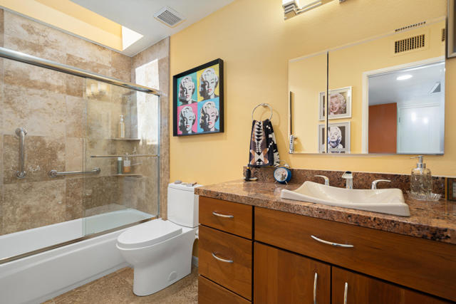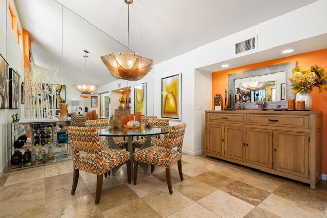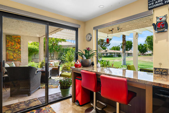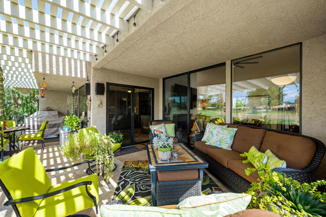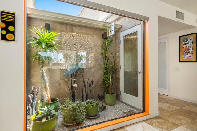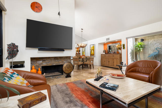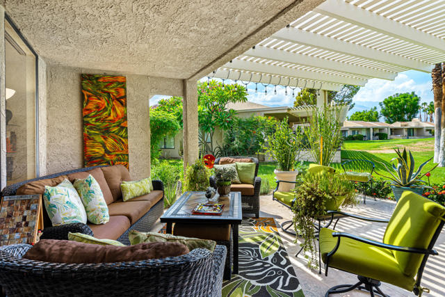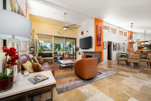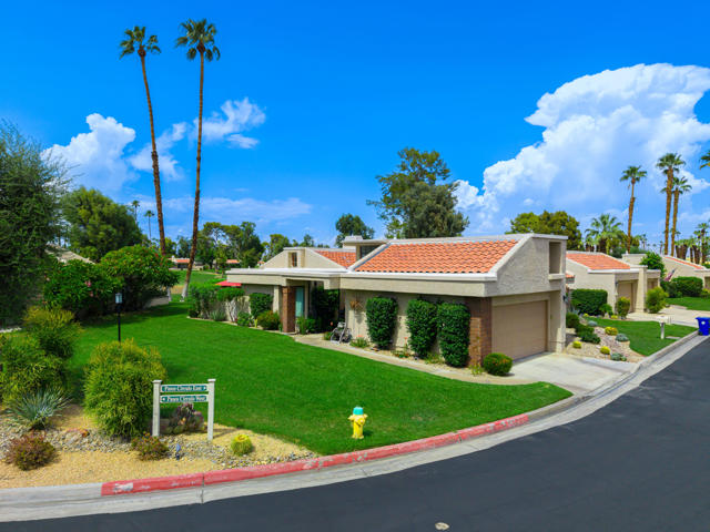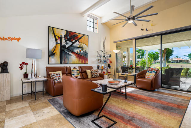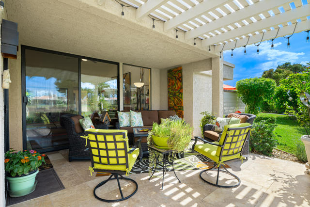 Welcome to this stunningly remodeled 3-bedroom, 2-bathroom condo in the gated community of Cathedral Canyon Country Club. Perfectly situated with a west-facing backyard, this home captures breathtaking golf course and mountain views that are rarely found in such a peaceful, picturesque setting.Inside, elegant travertine flooring flows throughout, complementing the fully equipped gourmet kitchen. A custom built-in fireplace adds warmth to the living area, while a bright atrium brings in natural light and creates an airy, open feel. For year-round comfort, the home has recently been upgraded with a brand-new AC unit.The spacious primary suite is a private retreat with an en-suite bathroom featuring a dual vanity and walk-in shower, plus its very own private patio--ideal for morning coffee or quiet relaxation. Two additional bedrooms are generously sized and share a beautifully updated bathroom highlighted by skylight accents for a spa-like touch.Outside, the expansive patio is perfect for entertaining guests or soaking in the dramatic sunsets over the fairway and mountains. Professional landscaping completes the picture, adding to the home's elegance and curb appeal.Meticulously remodeled and thoughtfully updated, this condo blends timeless design with modern upgrades for the ultimate desert living experience.