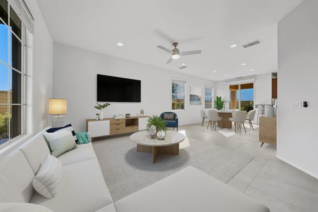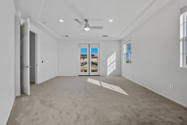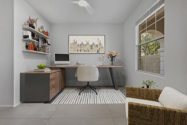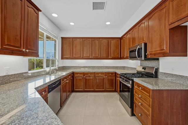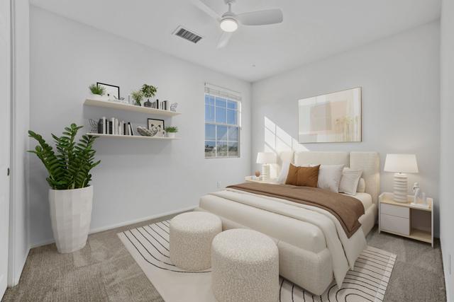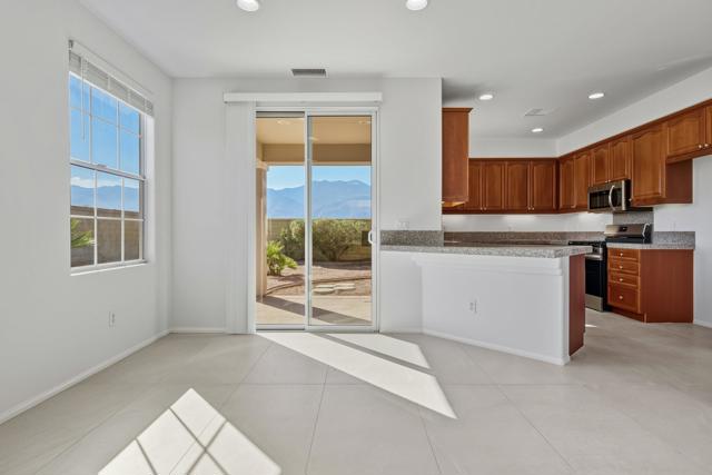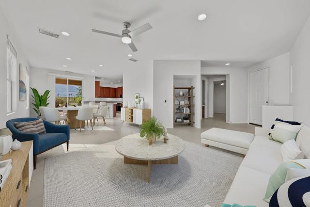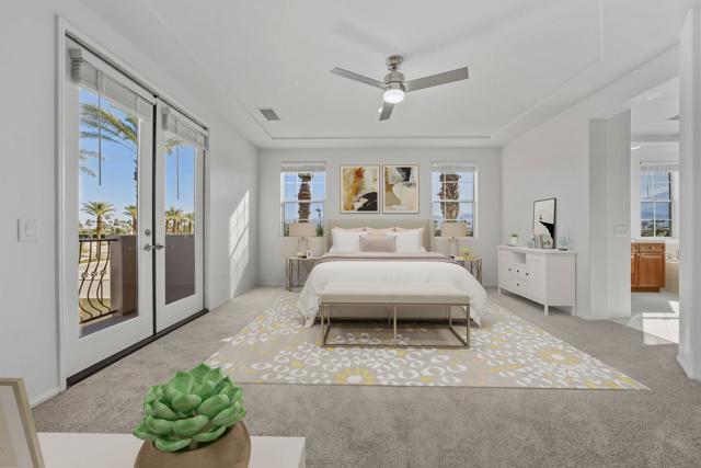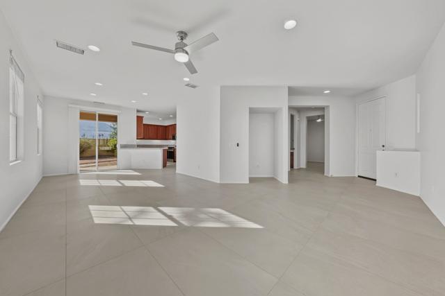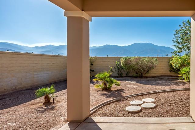 Back on the market! Beautifully updated single-family home in a prime location within the gated community of Campanile in Cathedral City is now available! This home offers over 2,000 sq. ft. of living space with 3 bedrooms, 3 baths, and an additional spacious bonus room that can be used as a den or a 4th bedroom. Recent upgrades include new tile floors, new carpet in the bedrooms, freshly painted exterior and interior of the home, new lighting, ceiling fans, window treatments, and a new gas stove. Enjoy gorgeous mountain views throughout most of the home, especially from the great room, and the primary bedroom and bath. This is one of the select few properties in the community that has its own private driveway for added convenience. Step into the chef's kitchen featuring granite counters, stainless steel appliances, and refaced cabinets. The large primary suite boasts dual vanities, a separate shower and tub, a generous walk-in-closet, and a private balcony to take in the serene views. Enjoy an open-concept layout with abundant natural light, high ceilings, a separate laundry area, and a spacious two-car garage. Outside awaits a good-sized backyard with a covered patio area and low-maintenance desert landscaping. Residents of Campanile enjoy resort-style amenities, including a community pool and spa, clubhouse, fitness center, parks and low HOA dues. Conveniently located near shopping, dining, and schools, and just a short drive to downtown Palm Springs. This home feels like new-call today for your private showing! Home has been virtually staged.