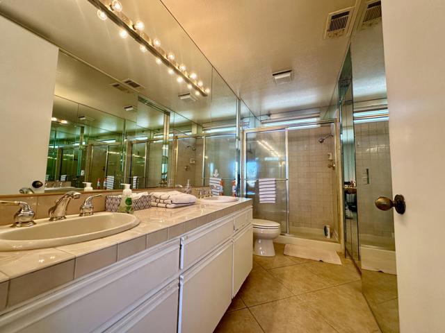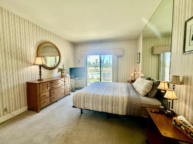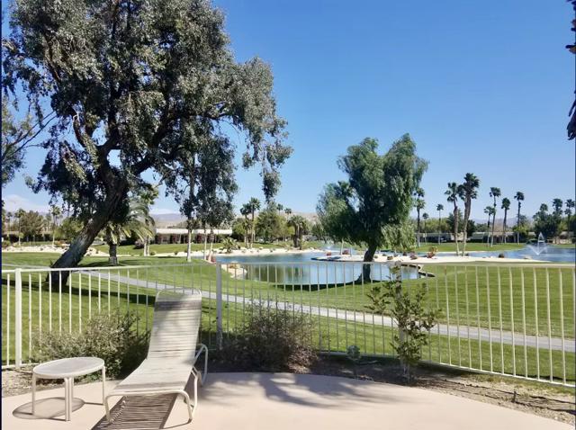 Gorgeous Golf Course condo. ***TURNKEY FURNISHED!*** Light and Bright with dual master bedrooms on opposite ends of the home for added privacy. Located inside the gates of the beautiful Desert Princess Country Club and just minutes from Downtown Palm Springs. With views from every room, this delightful condo features 2 spacious ensuite bedrooms both accessing the covered patio, and bathrooms featuring dual sinks, each with its own walk-in closet. High ceilings throughout the home complete with lake, golf course, pool, fountain, and desert views from your patio, living room, and both bedrooms. The adjacent heated pool and spa feels like your own private resort just outside of your back glass sliders. The home also includes in-unit washer and dryer and detached private garage. Front patio with western mountain views. LOW Land Lease to 2069; only $160.50 a month. Short-term vacation rentals are permitted at the Desert Princess, outstanding rental history with this home. Own a part of the most affordable gated Country Club in the Coachella valley. Desert Princess is known for its many wonderful amenities, offering 27-hole PGA Championship golf course, discounts and preferred tee-times for Owners, no Tee-time lotteries, no initiation fees, and rated among the best courses in the valley by GOLF DIGEST. HOA includes a social membership, cable TV & high speed WiFi internet, membership to Health and Fitness Center, over 35 sparkling swimming pools each with a spa for your enjoyment, grounds and exterior maintenance including roof, pest control, 10-tennis courts, pickleball, bocce ball, state-of-the-art fitness center, saunas, a full service spa that provides massages, facials, and full body treatments, a clubhouse, restaurant, driving range, and racquetball courts. 24 hour guard gated community. This quiet community is just minutes from the world that is Palm Springs; restaurants, shopping, casinos, an international airport, the Tramway, Art Museums, Theaters, Acrisure Arena, and Street Fairs. Perfect as a desert getaway, full-time residence, or investment property!